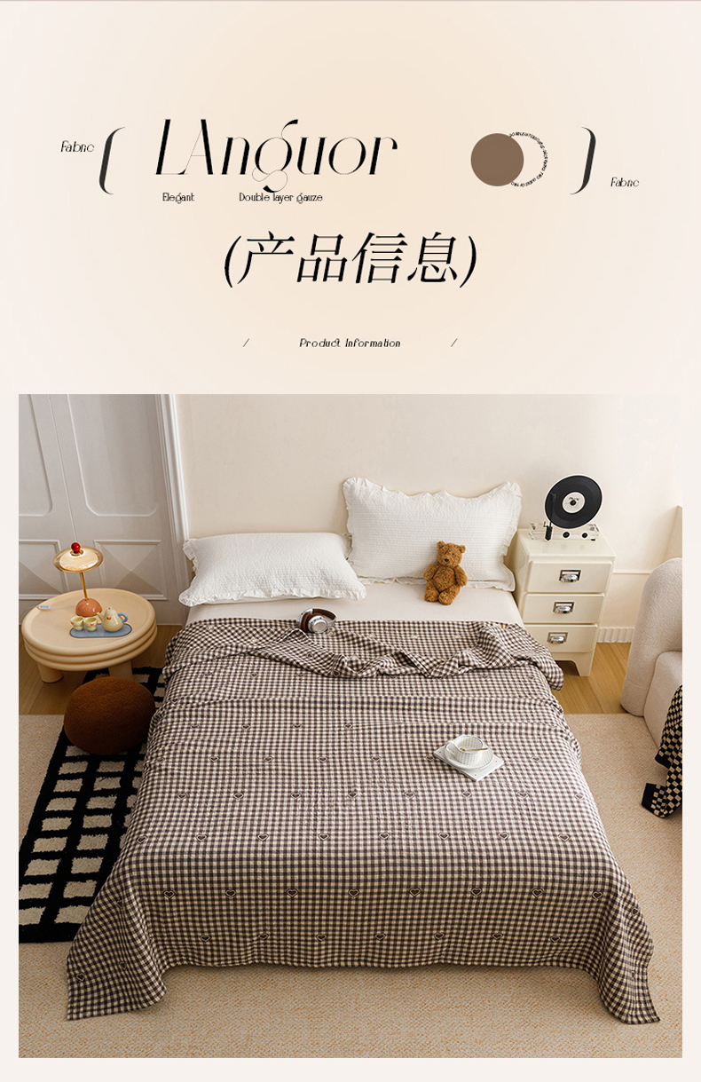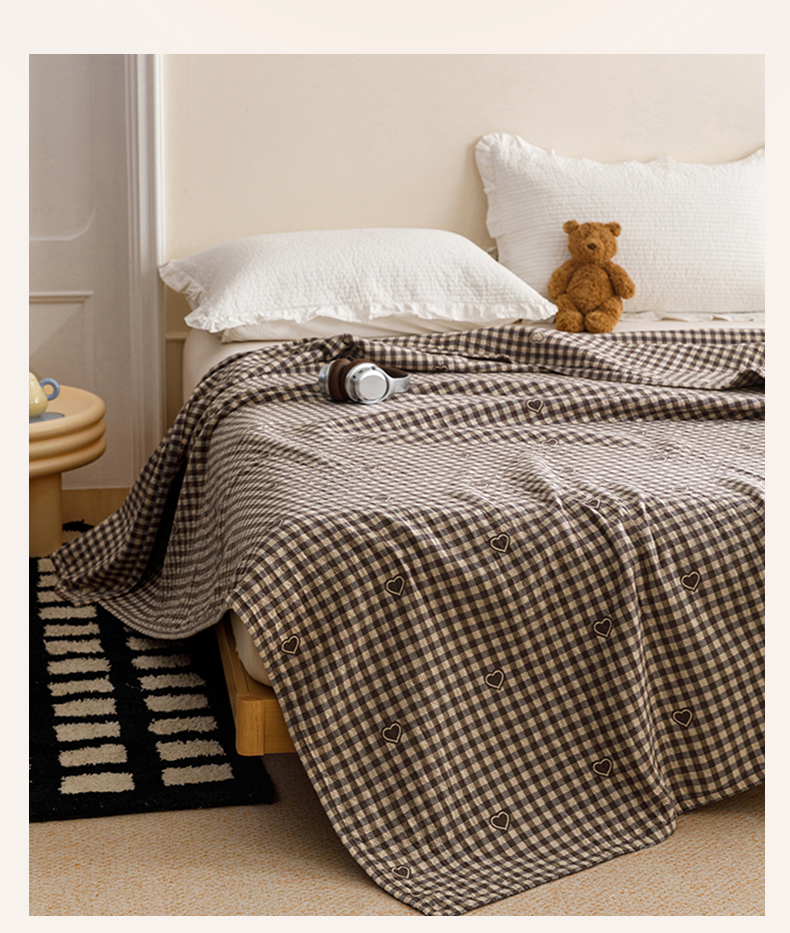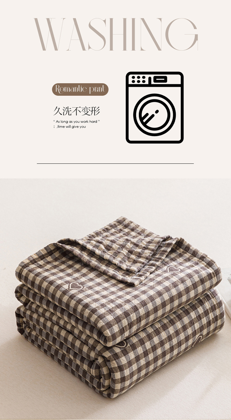 商品名称:悦然毛巾被 2026春夏新款水洗色织提花全棉纯棉纱布毛巾被盖毯休闲夏被毛毯 棕格心语