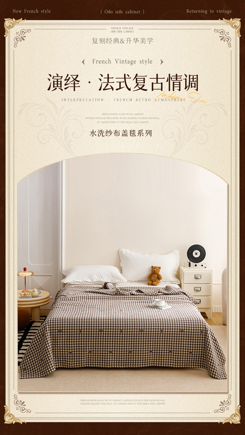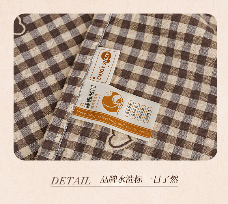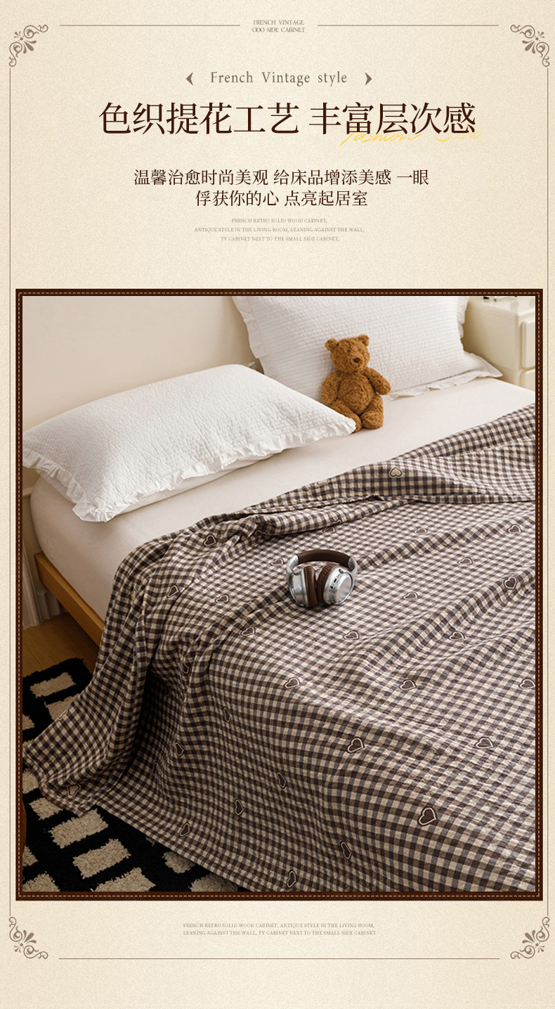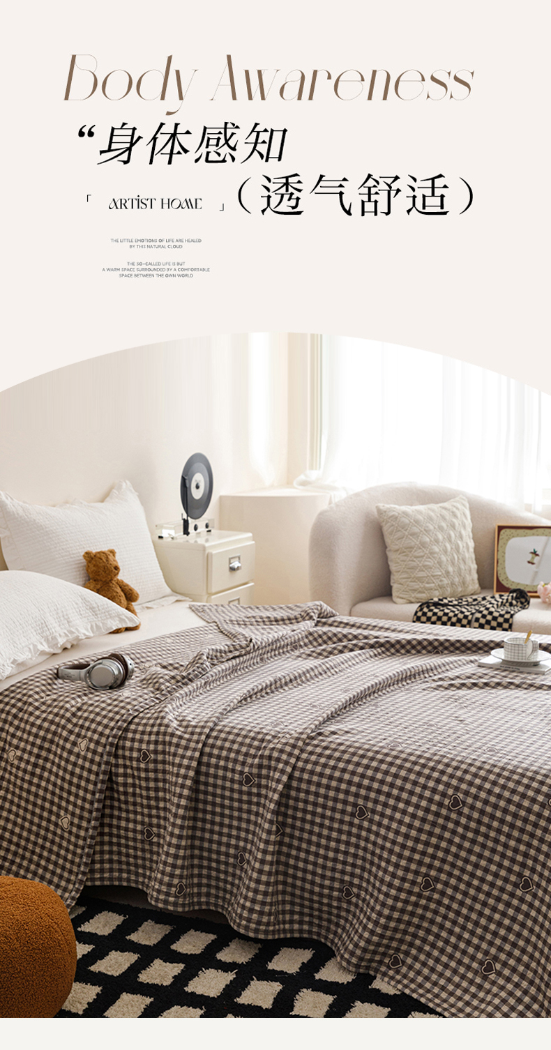 商品名称:悦然毛巾被 2026春夏新款水洗色织提花全棉纯棉纱布毛巾被盖毯休闲夏被毛毯 棕格心语