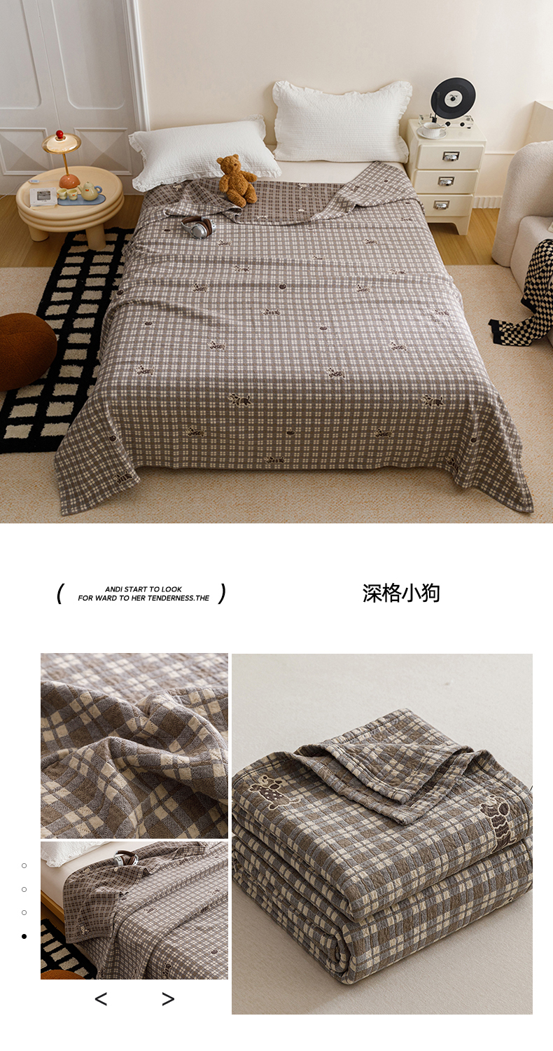 (总)悦然毛巾被 2026春夏新款水洗色织提花全棉纯棉纱布毛巾被盖毯休闲夏被毛毯,组合图仅供展示不可下单,深格萌马,深格小狗,棕格心语,棕格星芒,棕格熊语