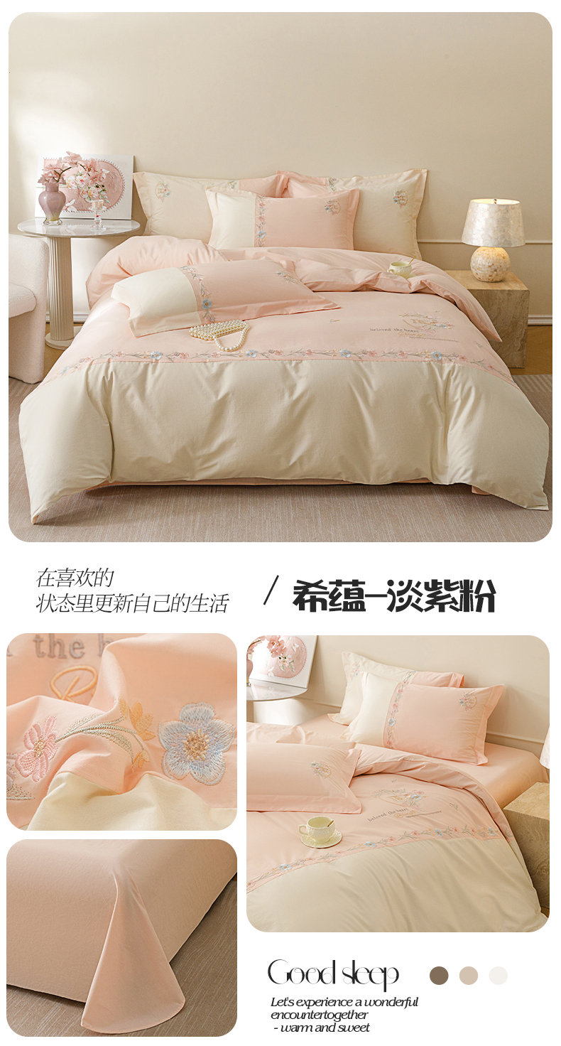 当前位置: 91家纺网 > 商品网购 > 床品套件 > 四件套 > 全棉普通四件套 > 艾莱家纺 2026春夏新款全棉纯棉水洗棉刺绣加厚四件套-希蕴 希蕴-微微紫