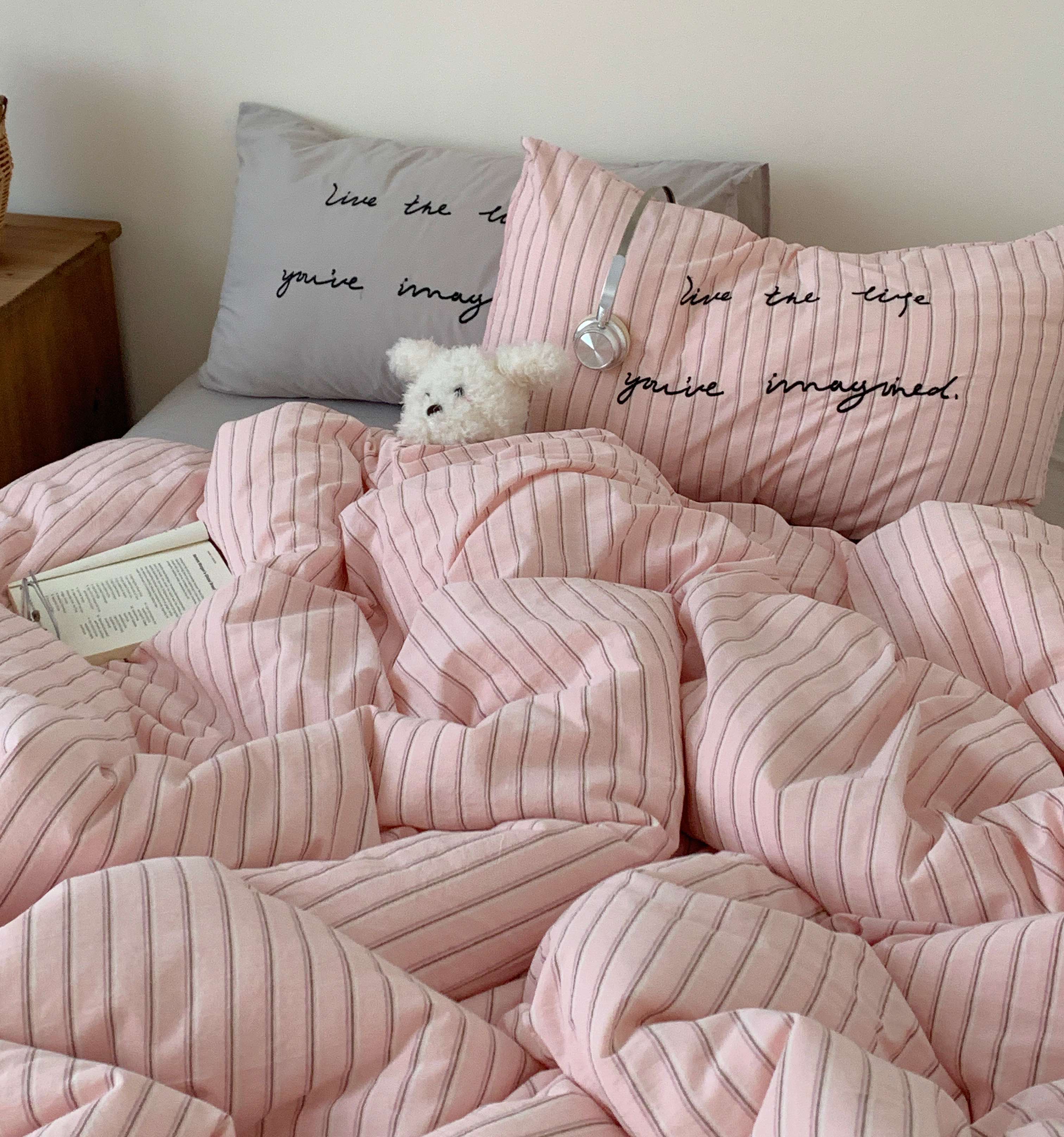 (总)桃喜 2026春夏全棉新品色织水洗棉条纹博主ins风四件套学生三件套(会员-5)
