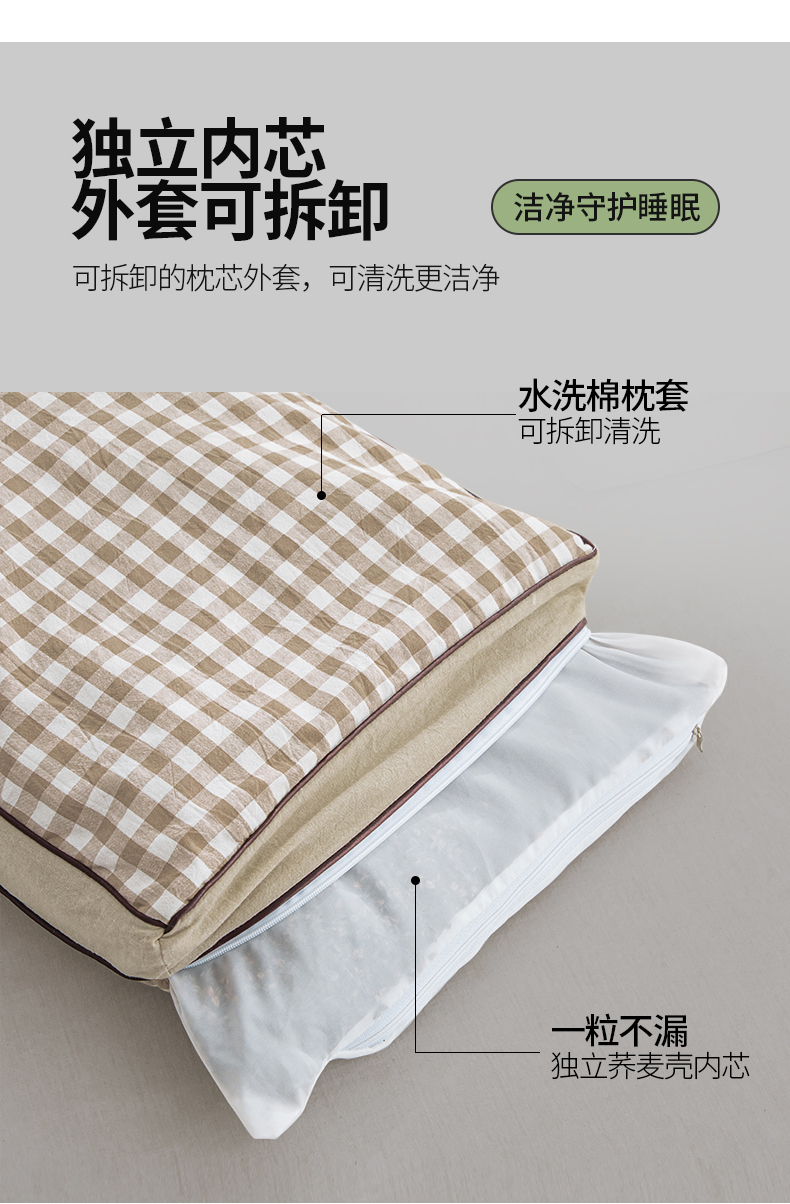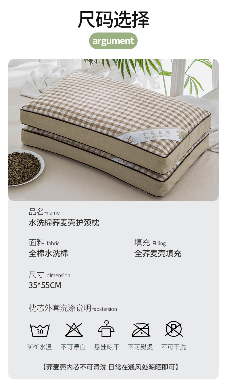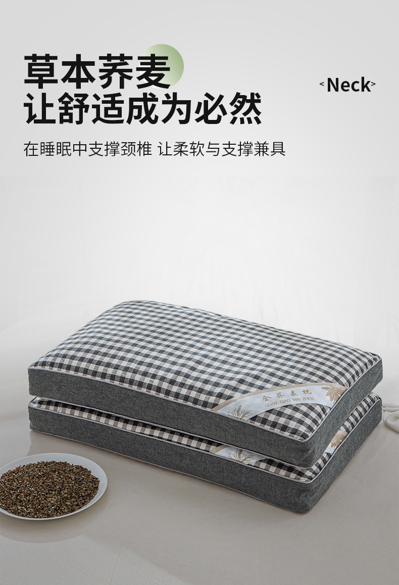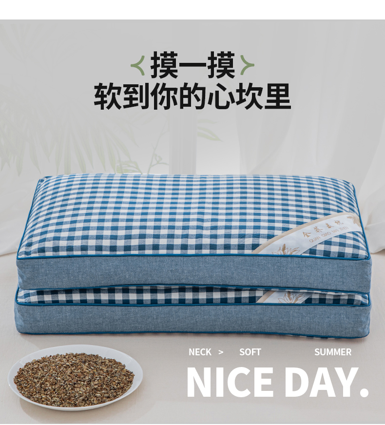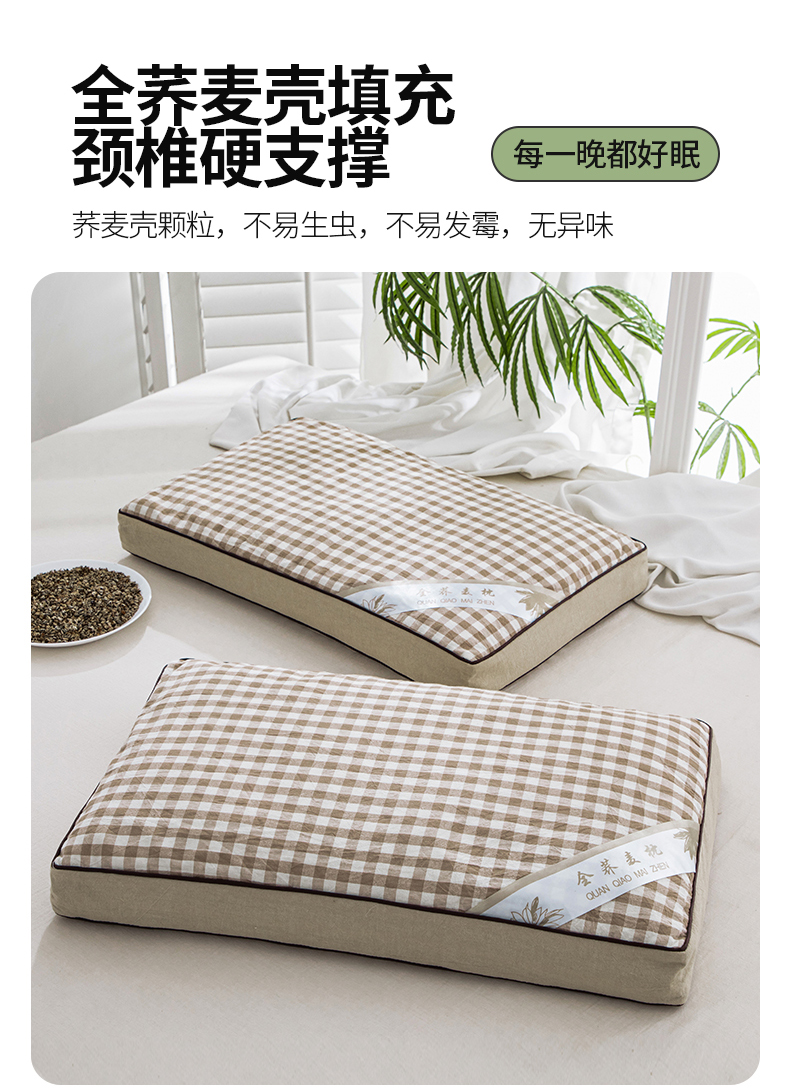 (总)仁宇枕业 2026新款全棉纯棉色织水洗棉田园格子系列草本荞麦枕头枕芯