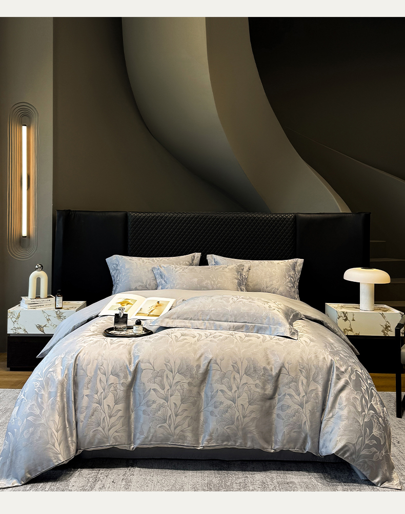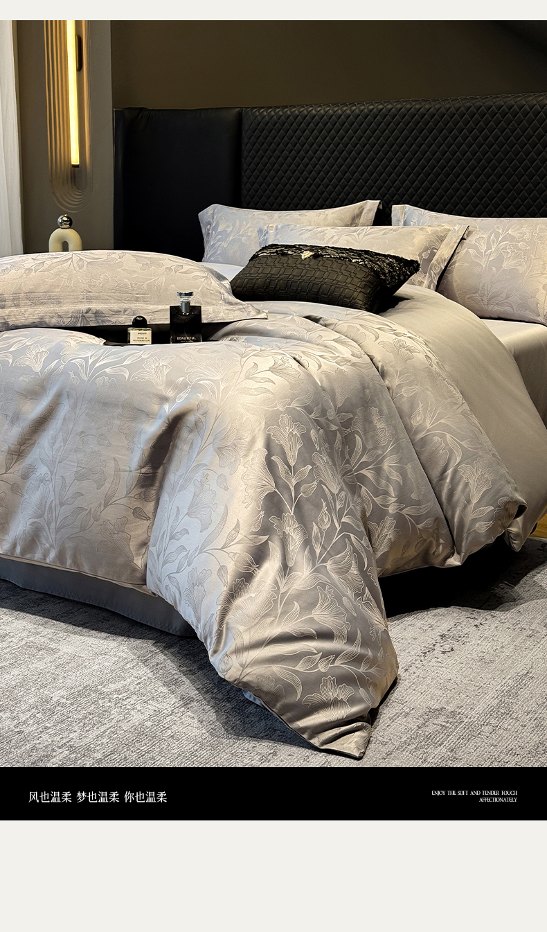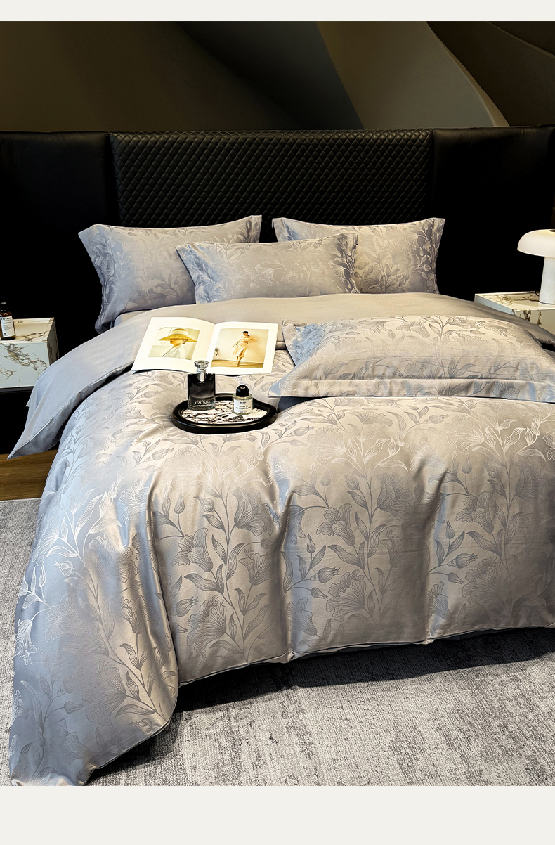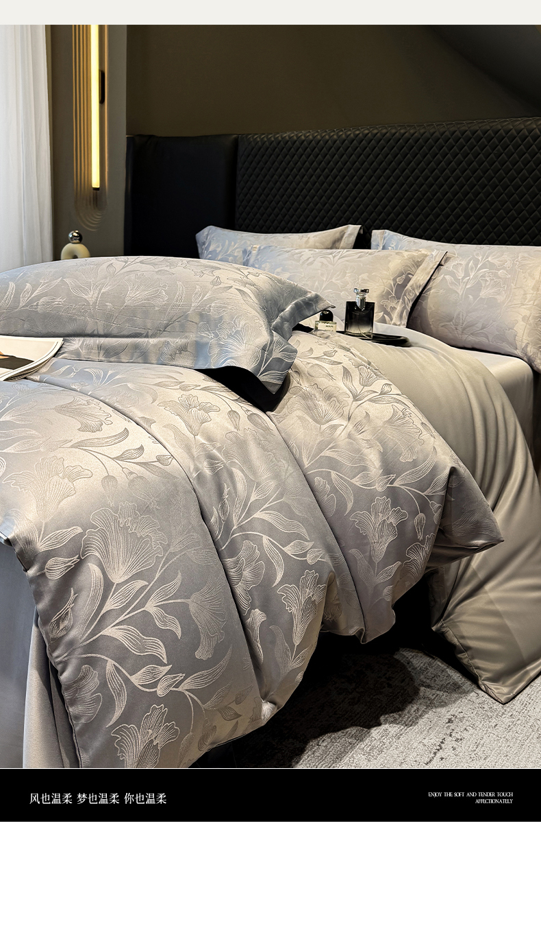 当前位置: 91家纺网 > 商品网购 > 床品套件 > 四件套 > 化纤普通四件套 > 奥汀洛家纺 2026春夏新款水洗冰丝亮丝提花四件套 百合-灰
