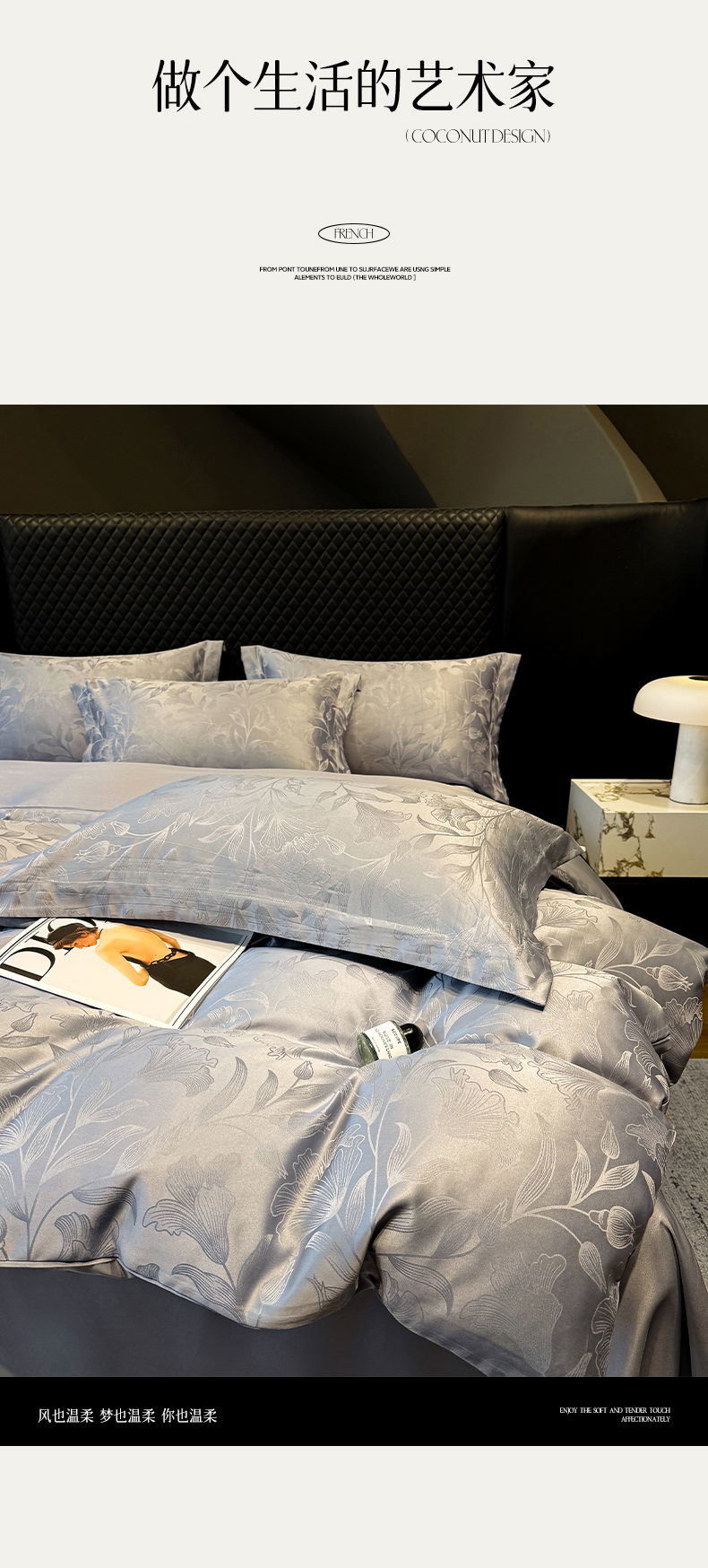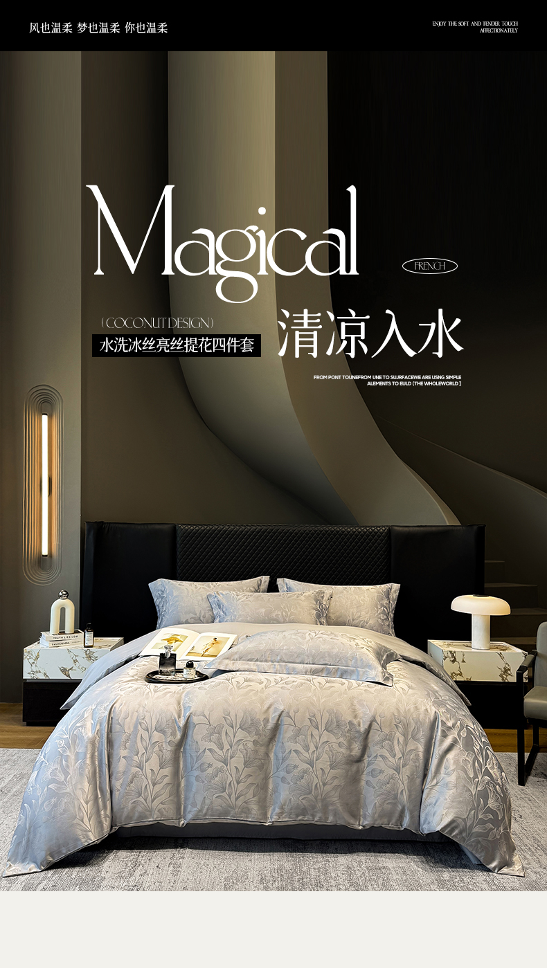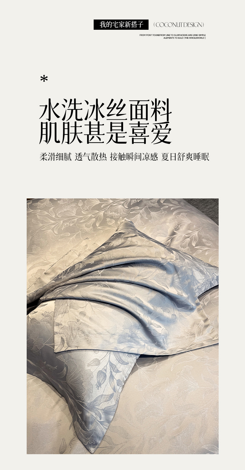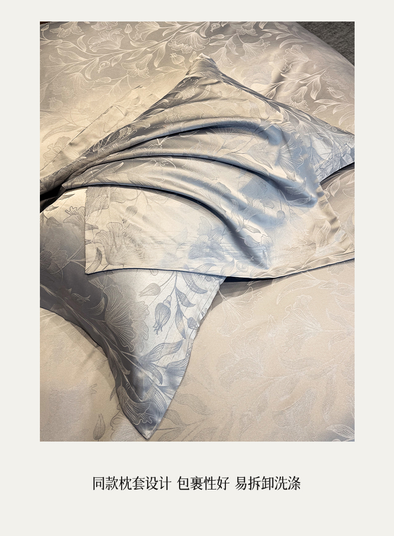 当前位置: 91家纺网 > 商品网购 > 床品套件 > 四件套 > 化纤普通四件套 > 奥汀洛家纺 2026春夏新款水洗冰丝亮丝提花四件套 百合-灰