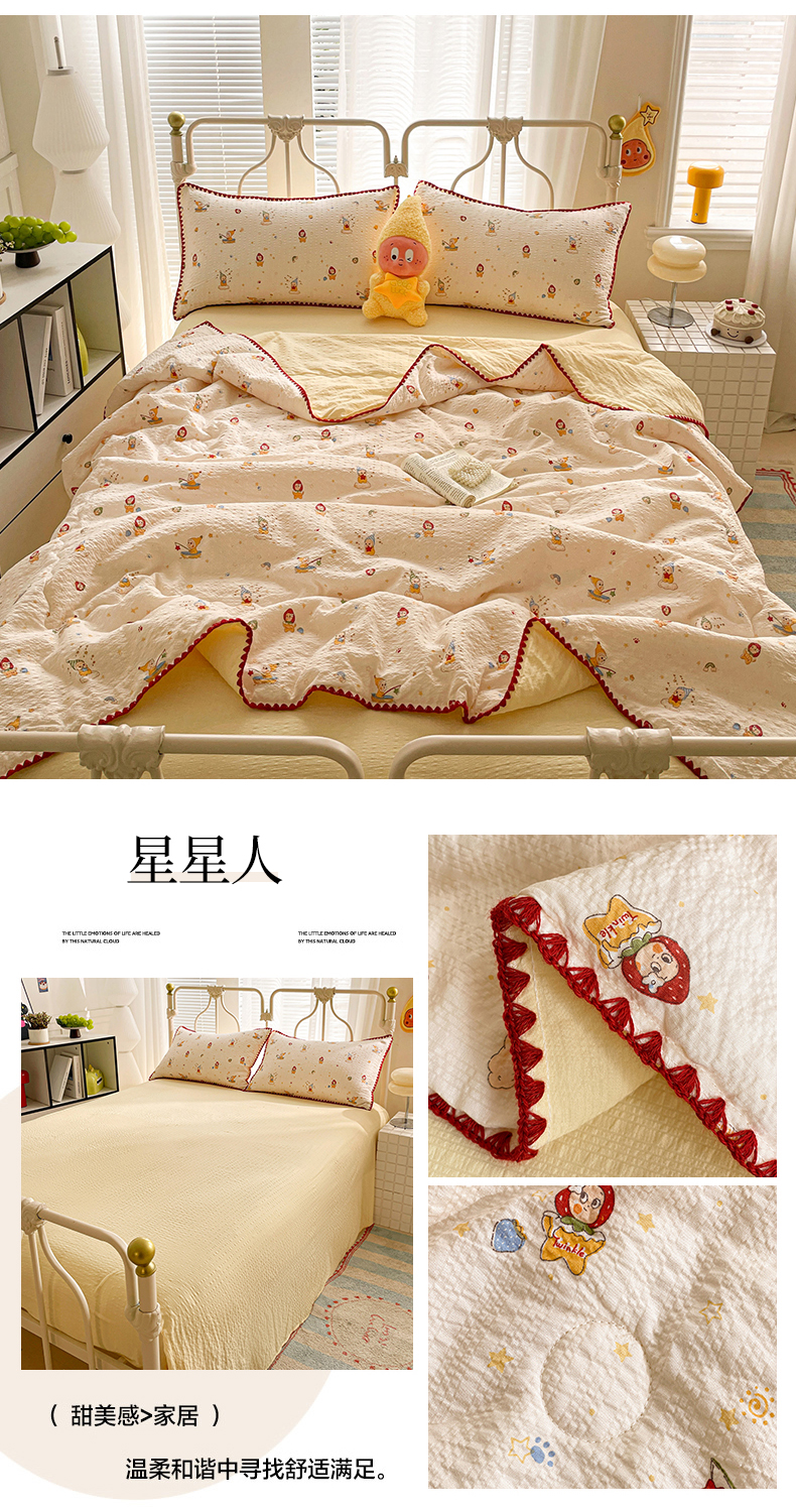 (总)蓝极人 2026新款泡芙贝壳边夏被四件套,XB星星人,XB草莓,XB好心情,XB蘑菇兔,XB苹果狗,XB曲奇猫,XB生日狗,XB施华洛黄,XB耶耶狗,组合图仅供展示-不可下单