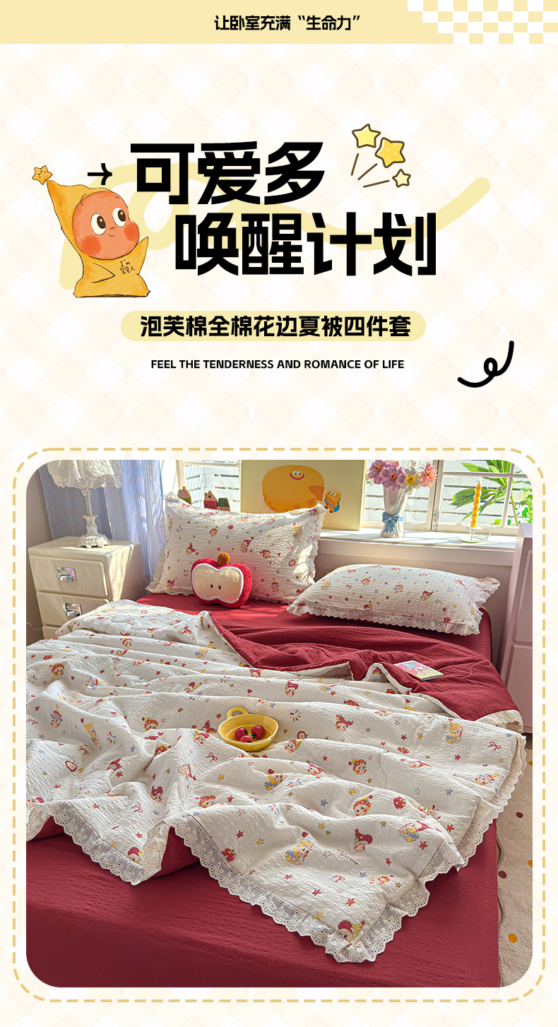 (总)弗苓家纺 2026新款高克重泡芙棉花边款夏被夏凉被空调被四件套小红书推荐-风格二,小红帽,熊熊乐园,音乐喵,海盐草莓,南瓜派对,英伦小熊,旋转木马,复古繁花,汪星人,暖橘枝,柔诗意,悦悦小兔,花有花期,日光漫游,樱桃笔记,蓝粉萌团,格格星,星芒凯蒂,描线小猫-咖,秋末南瓜星,栗色木马纹,松间茶事,片刻小狗,小猫幻境-灰,花筐少女,浅蓝花枝,蓝雪草,贝壳星,躲猫猫,蓝缎结,浅川纹,旧街星星,马上有钱,躲雨小兔,木马小花团,微风花园,幸福加马,条纹星,组合图(仅供展示不可下单)