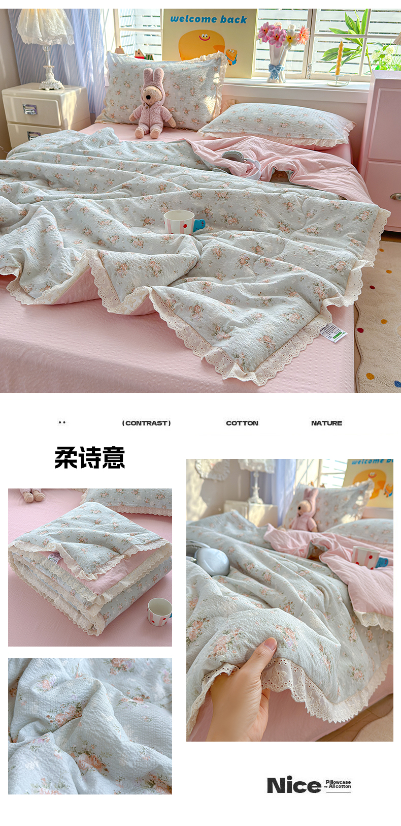 (总)弗苓家纺 2026新款高克重泡芙棉花边款夏被夏凉被空调被四件套小红书推荐-风格一,小红帽,熊熊乐园,音乐喵,海盐草莓,南瓜派对,英伦小熊,旋转木马,复古繁花,汪星人,暖橘枝,柔诗意,悦悦小兔,花有花期,日光漫游,樱桃笔记,蓝粉萌团,格格星,星芒凯蒂,描线小猫-咖,秋末南瓜星,栗色木马纹,松间茶事,片刻小狗,小猫幻境-灰,花筐少女,浅蓝花枝,蓝雪草,贝壳星,躲猫猫,蓝缎结,浅川纹,旧街星星,马上有钱,躲雨小兔,木马小花团,微风花园,幸福加马,条纹星,组合图(仅供展示不可下单)