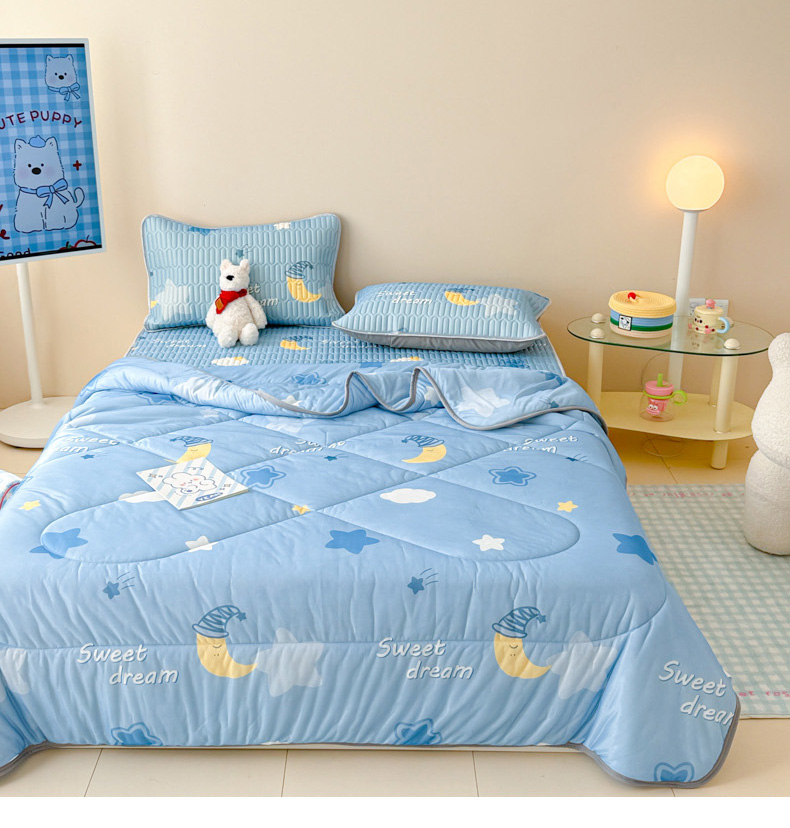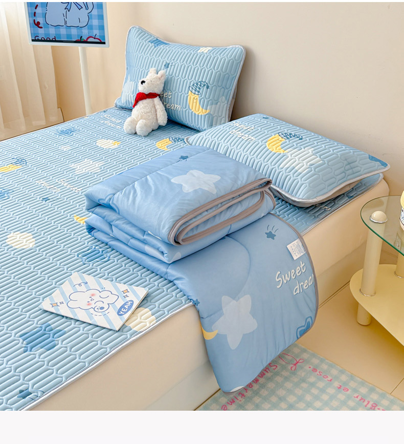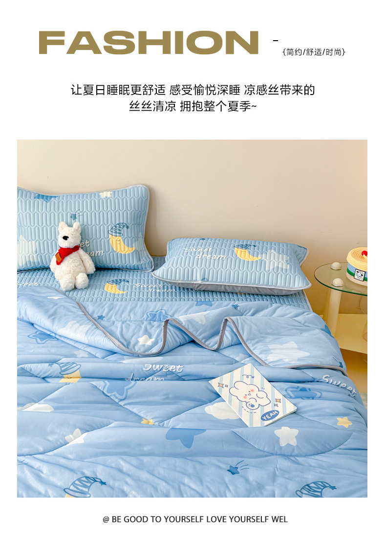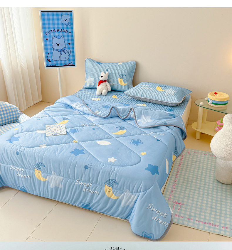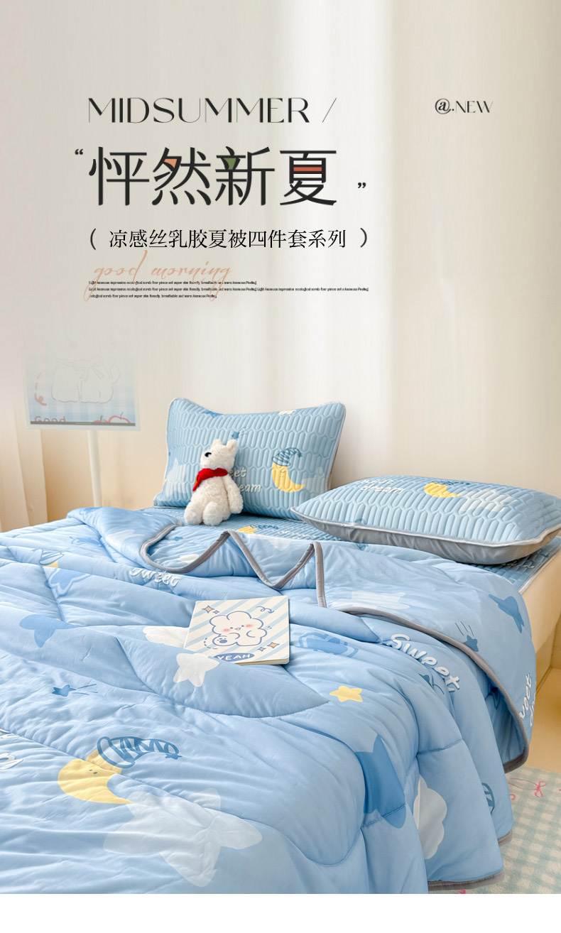 当前位置: 91家纺网 > 商品网购 > 床品套件 > 四件套 > 夏被四件套 > 柒月家居 2026新款凉感丝小清新乳胶凉席夏被四件套系列 星星月亮