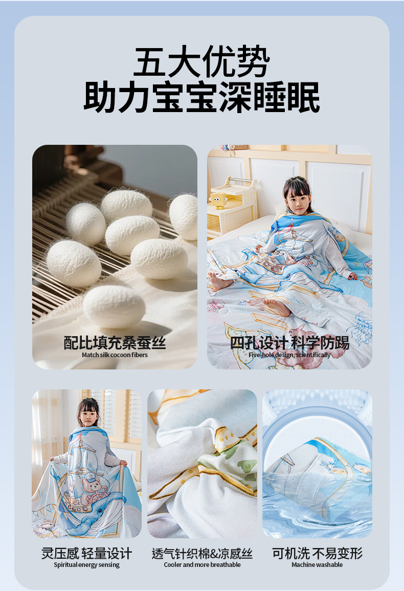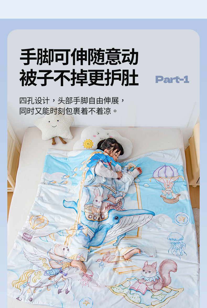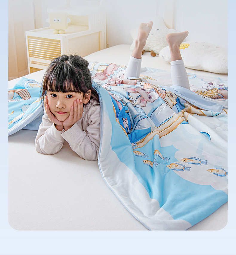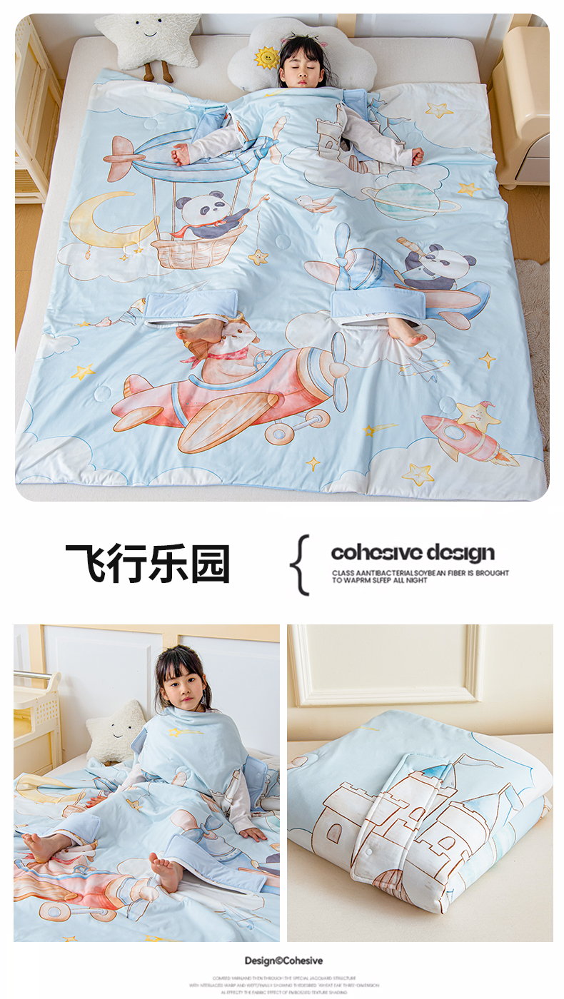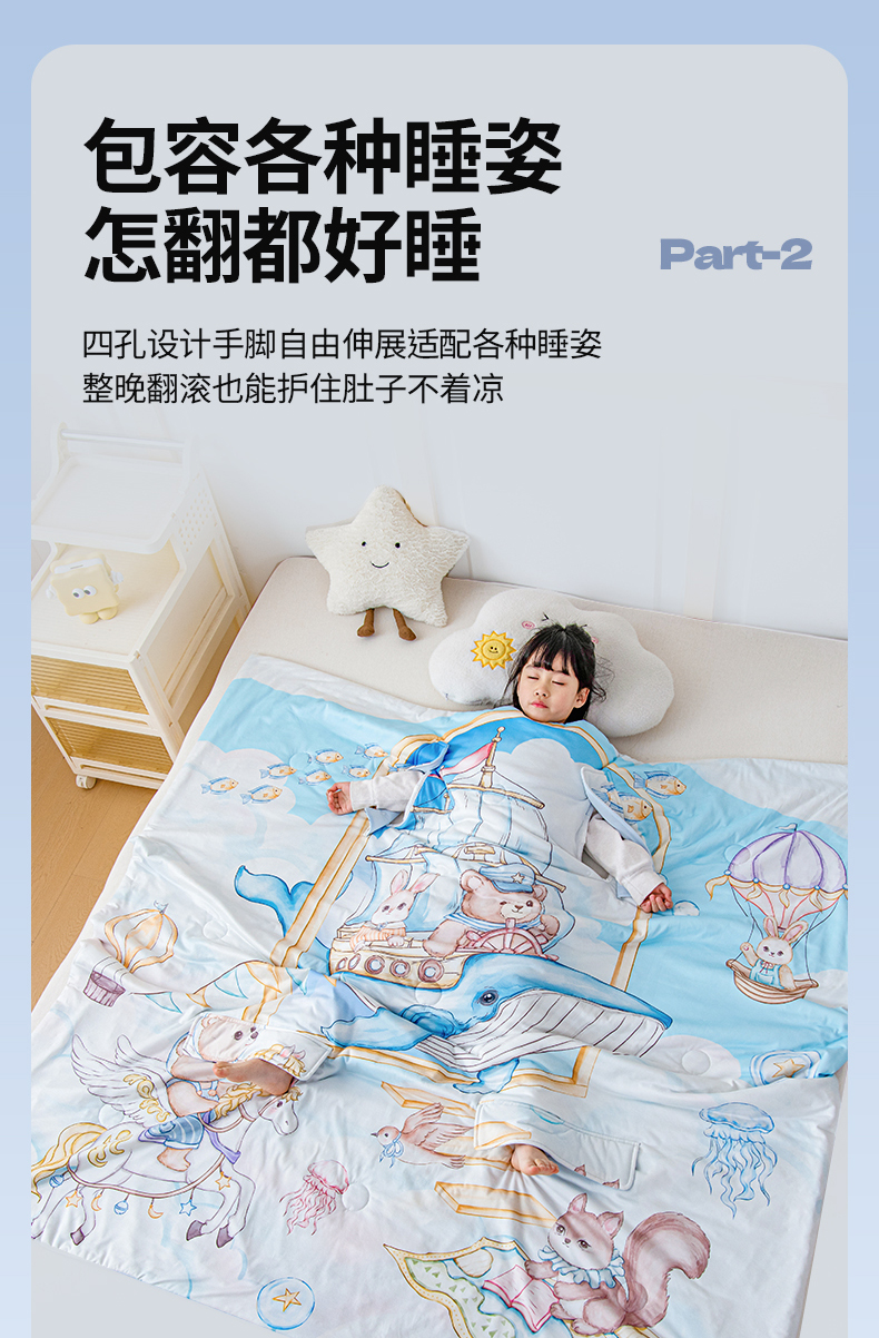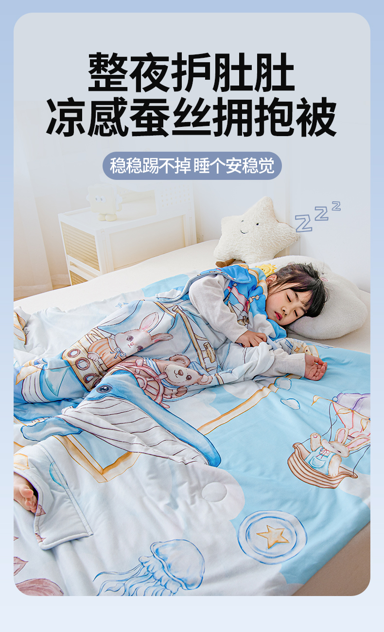 (总)吉咪兔家纺 2026新款桑蚕丝护肚防踢睡袋多功能盖毯宝宝夏被拥抱被儿童夏被儿童防踢被,飞行乐园,丰收果园,鲸鱼飞船,森林音乐,小王子