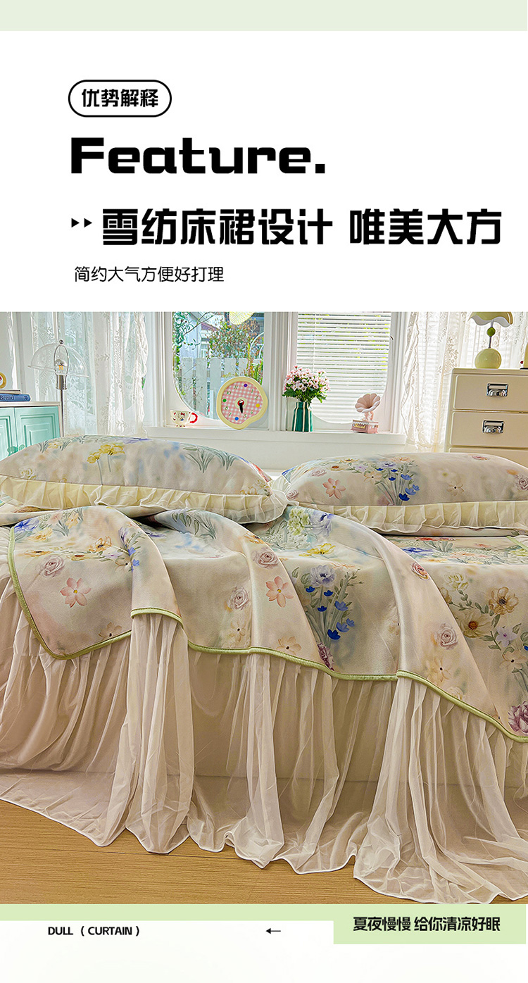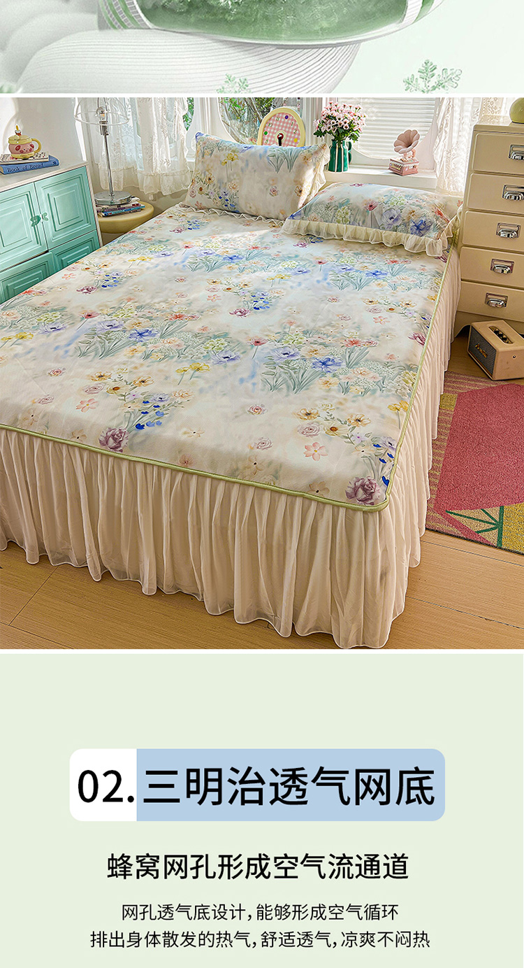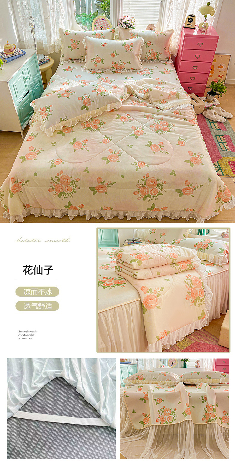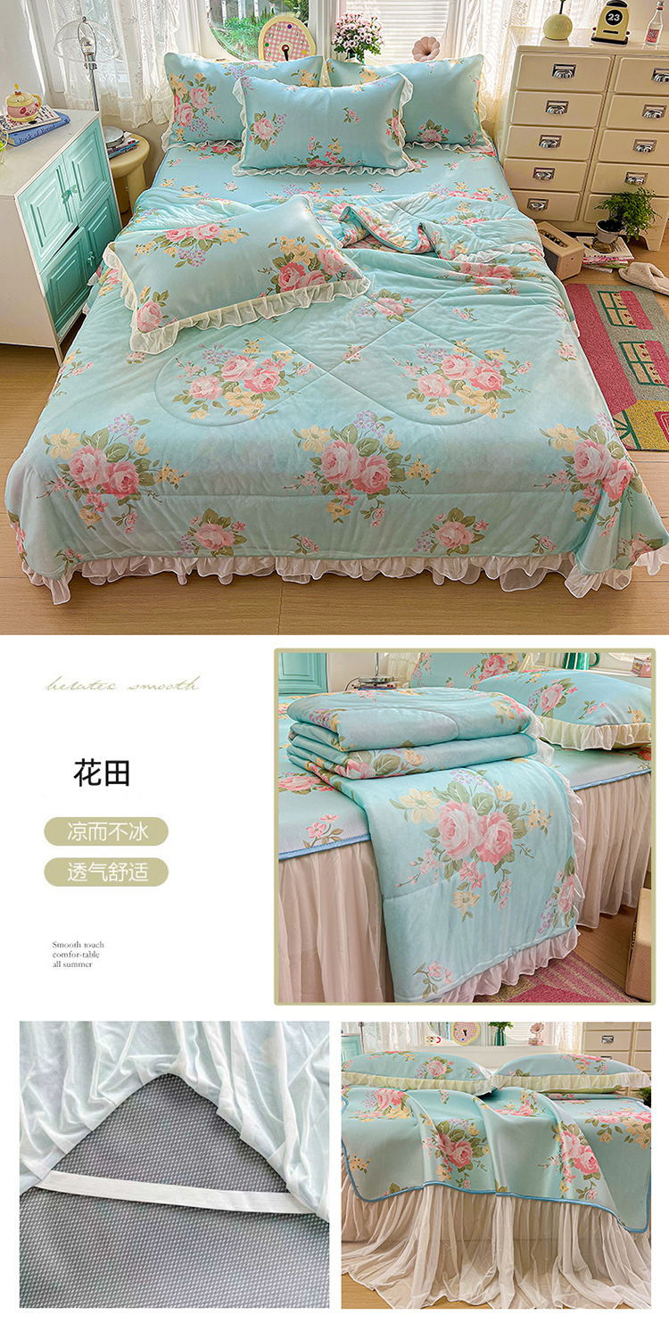商品名称:(总)2026新款印花冰丝凉席夏被四件套凉感丝夏被花边床裙凉席套件冰感丝凉席三件套
