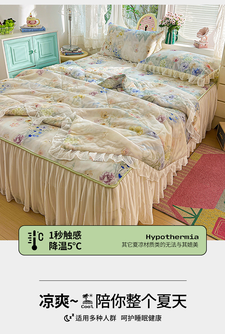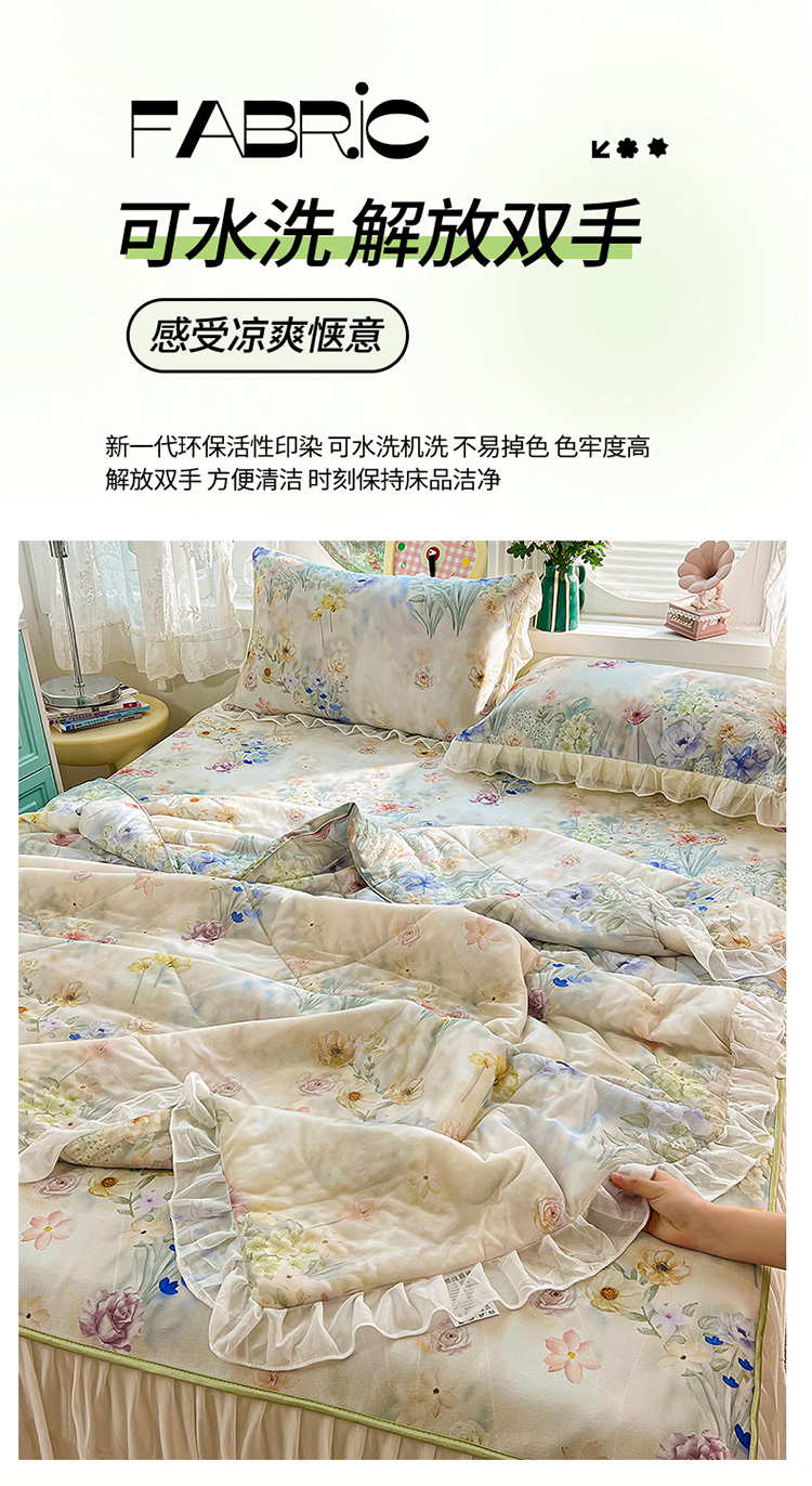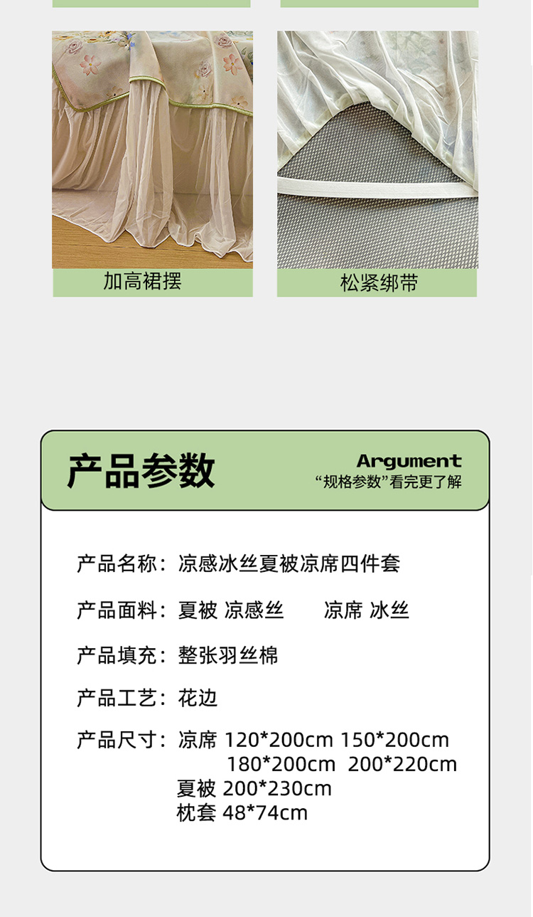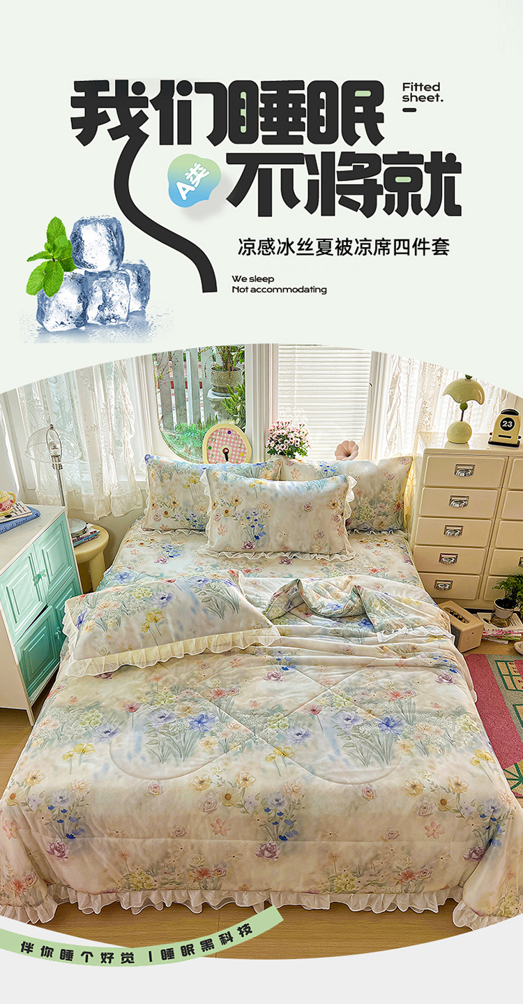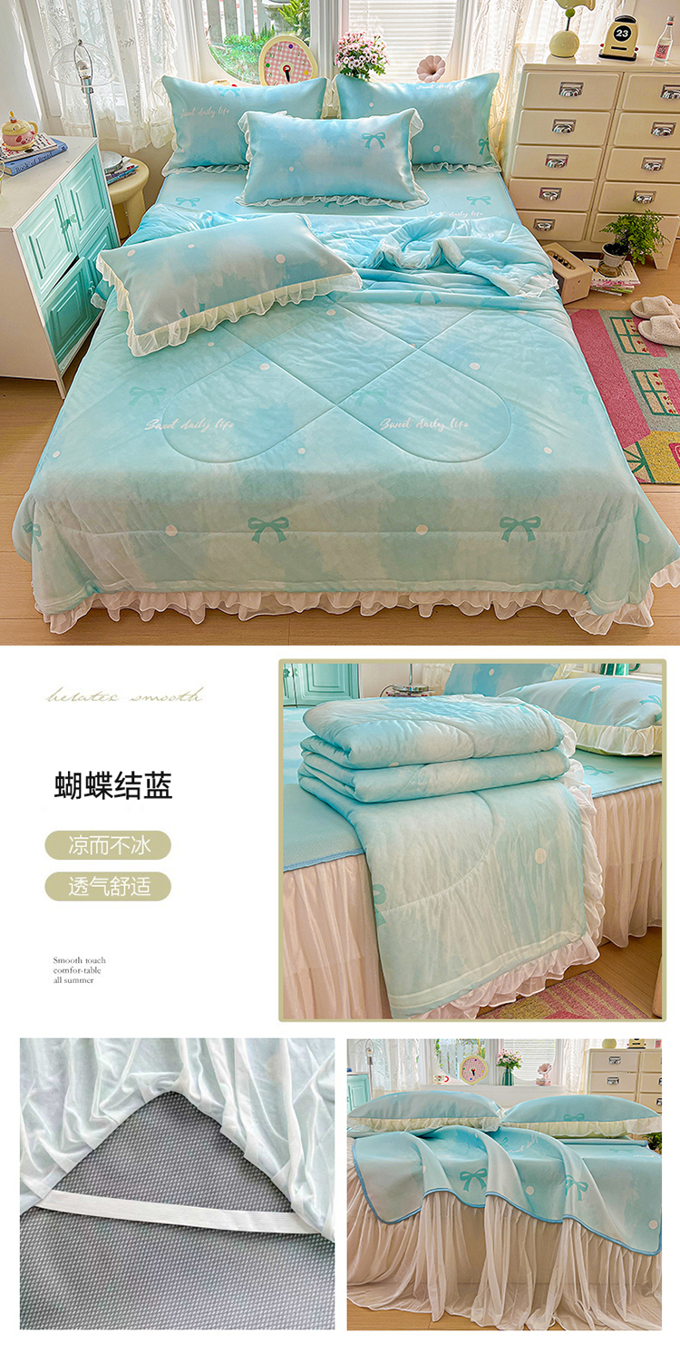 商品名称:(总)2026新款印花冰丝凉席夏被四件套凉感丝夏被花边床裙凉席套件冰感丝凉席三件套