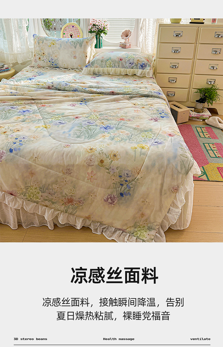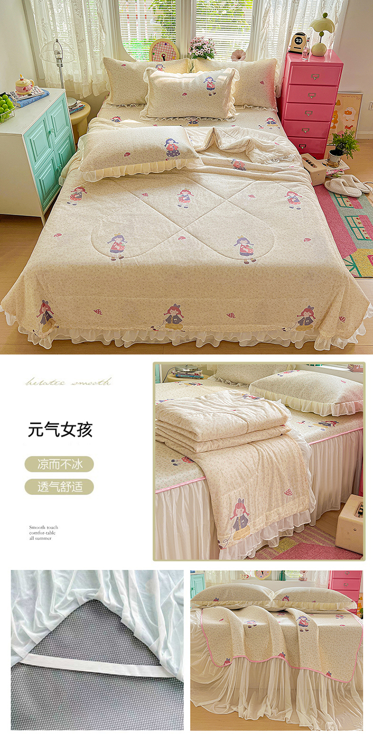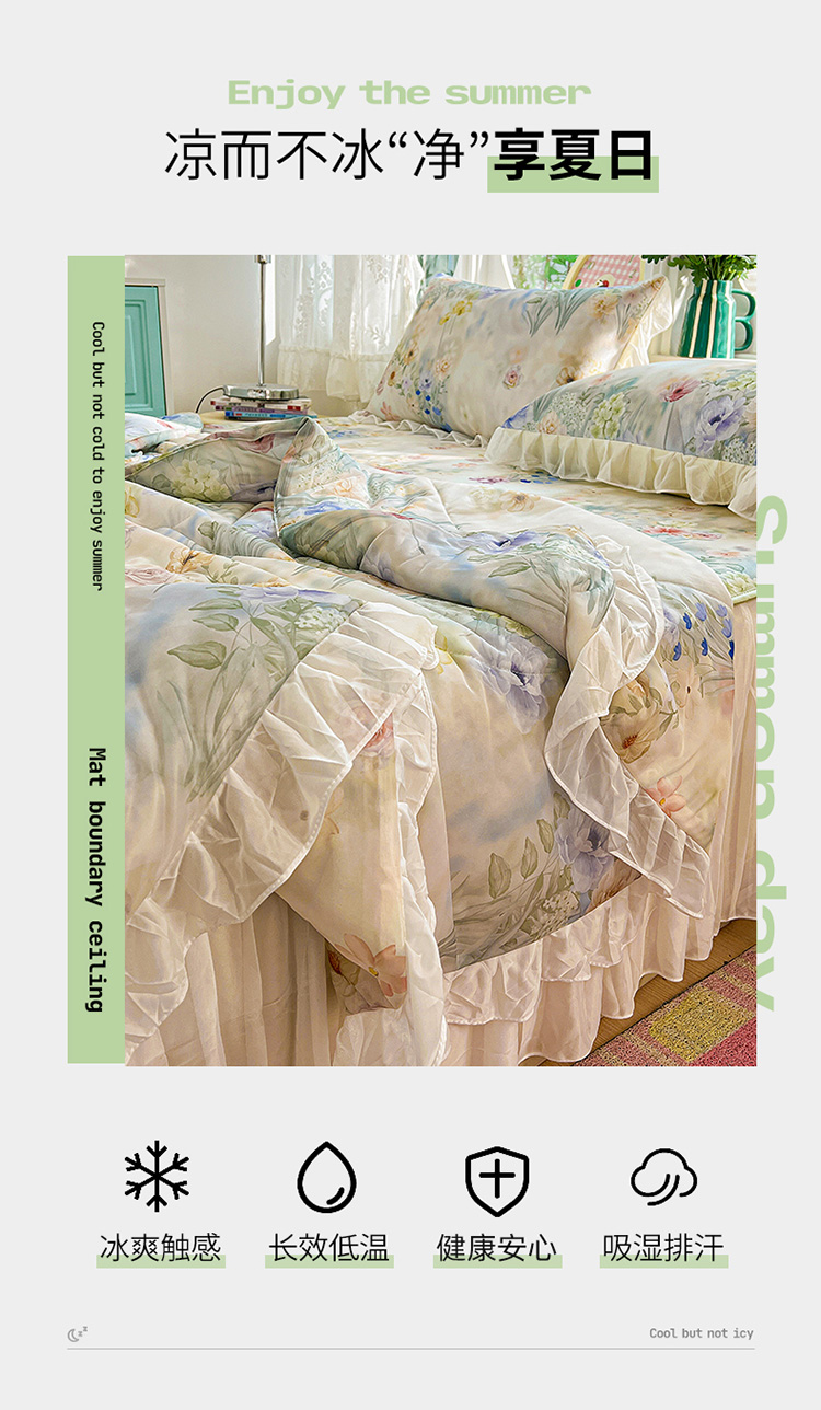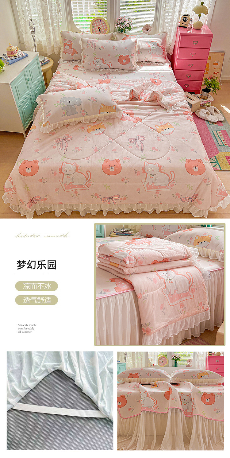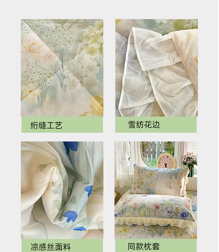 商品名称:(总)2026新款印花冰丝凉席夏被四件套凉感丝夏被花边床裙凉席套件冰感丝凉席三件套