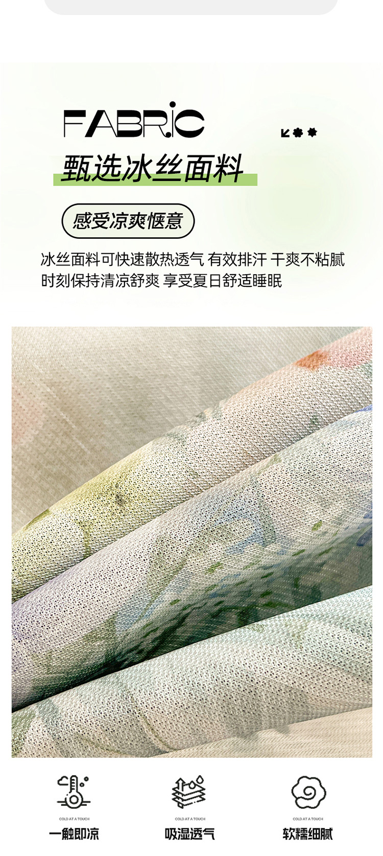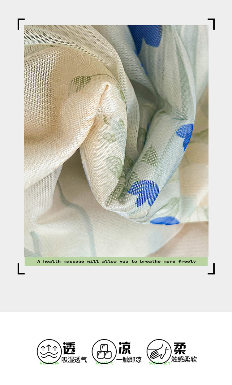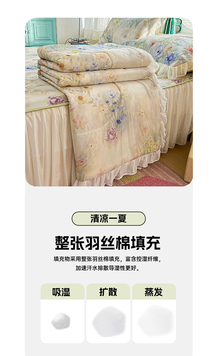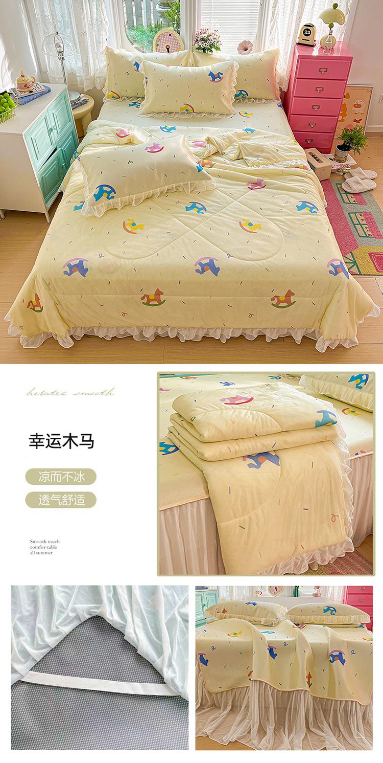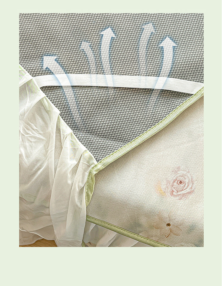 商品名称:(总)2026新款印花冰丝凉席夏被四件套凉感丝夏被花边床裙凉席套件冰感丝凉席三件套