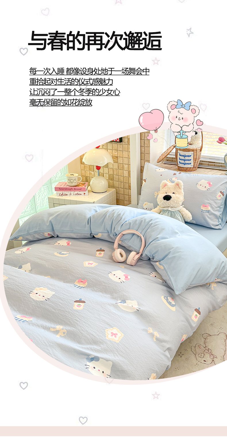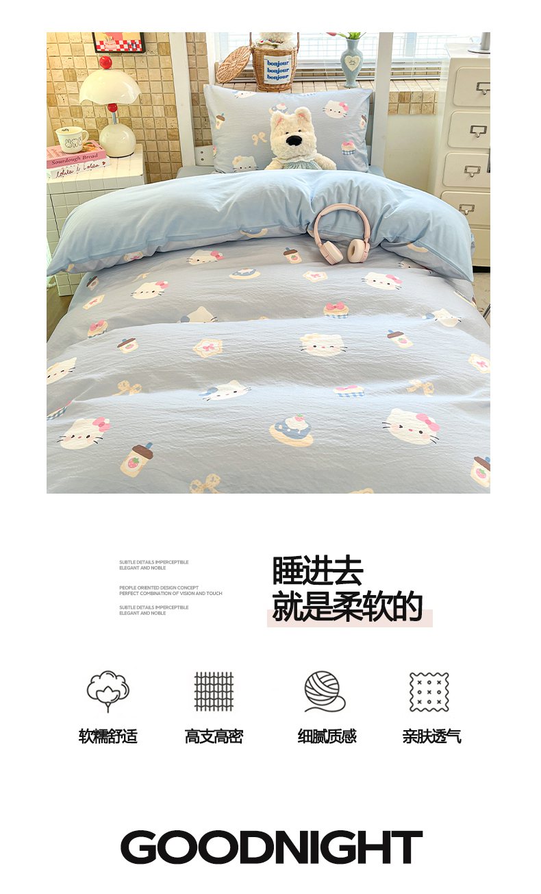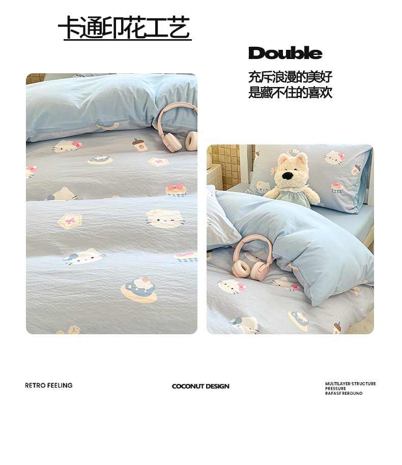 当前位置: 91家纺网 > 商品网购 > 床品套件 > 三件套 > 川悦生活 【提供买家秀】2026新款云感双层纱木棉学生床笠套件 汽水小咪