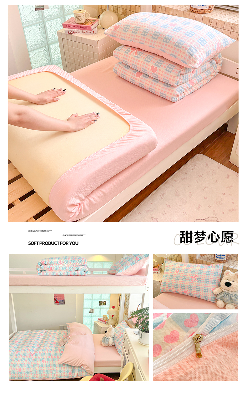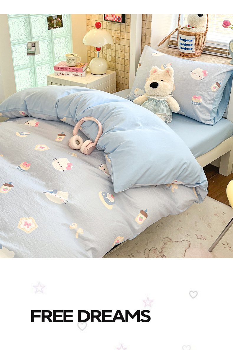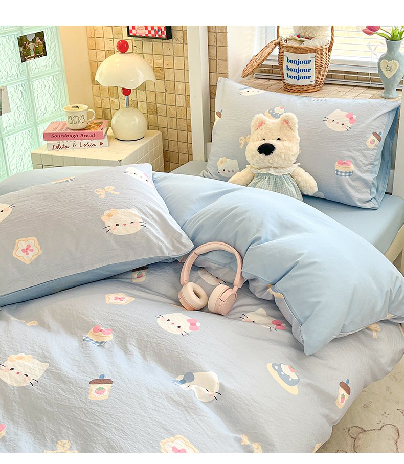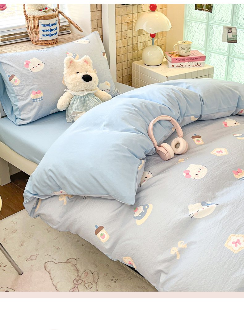 当前位置: 91家纺网 > 商品网购 > 床品套件 > 三件套 > 川悦生活 【提供买家秀】2026新款云感双层纱木棉学生床笠套件 汽水小咪