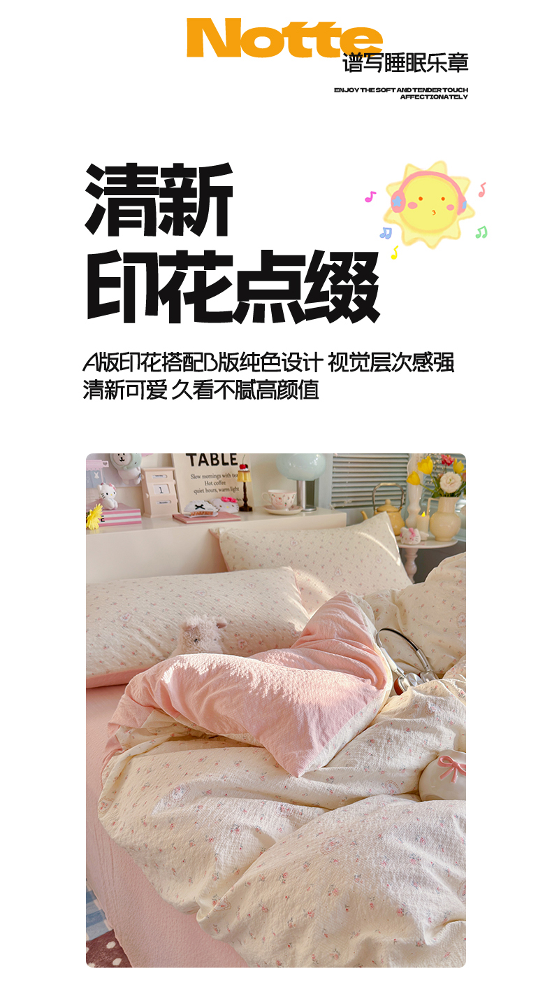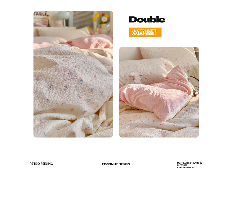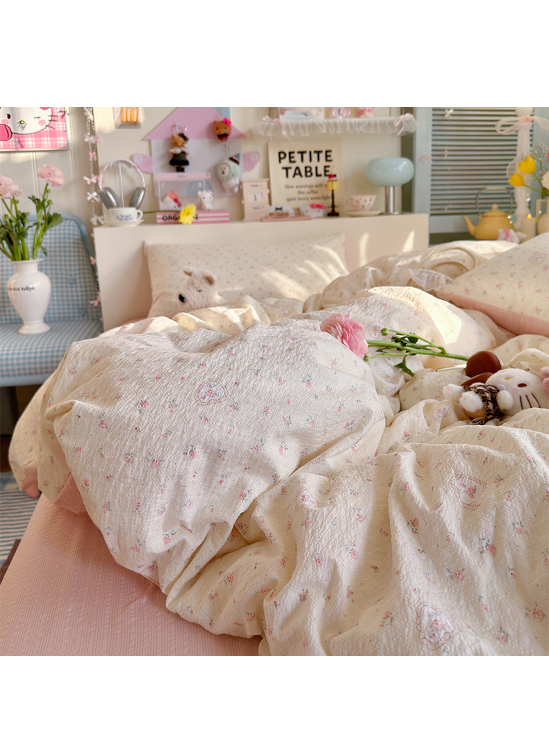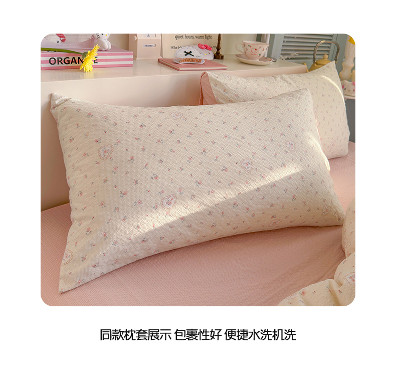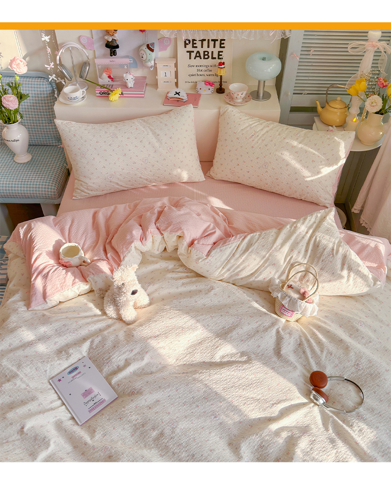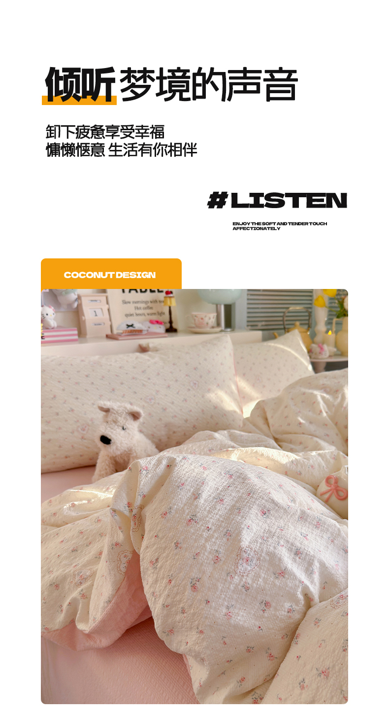 当前位置: 91家纺网 > 商品网购 > 床品套件 > 四件套 > 双层纱四件套 > 铺尚美家纺 2026新款小清新110g高品质直播热卖款A类泡芙棉双层纱四件套 甜昔