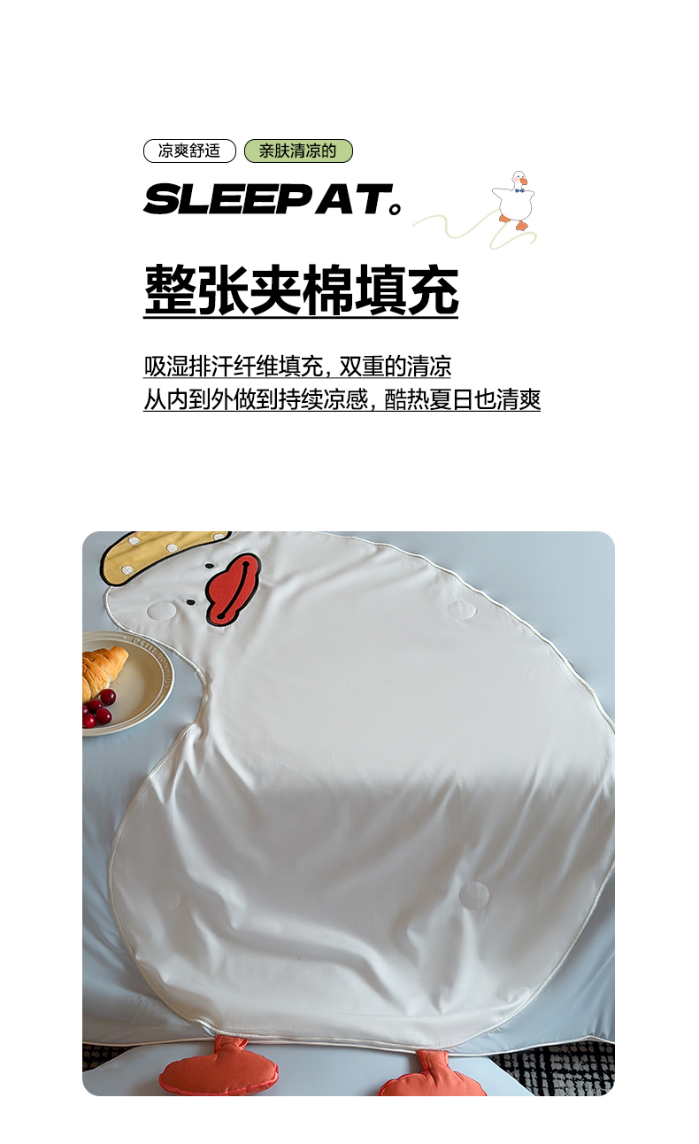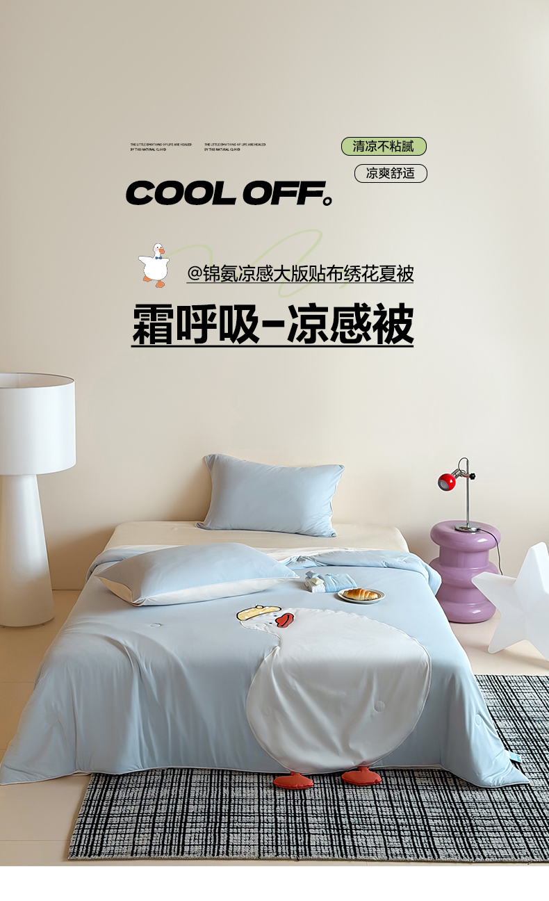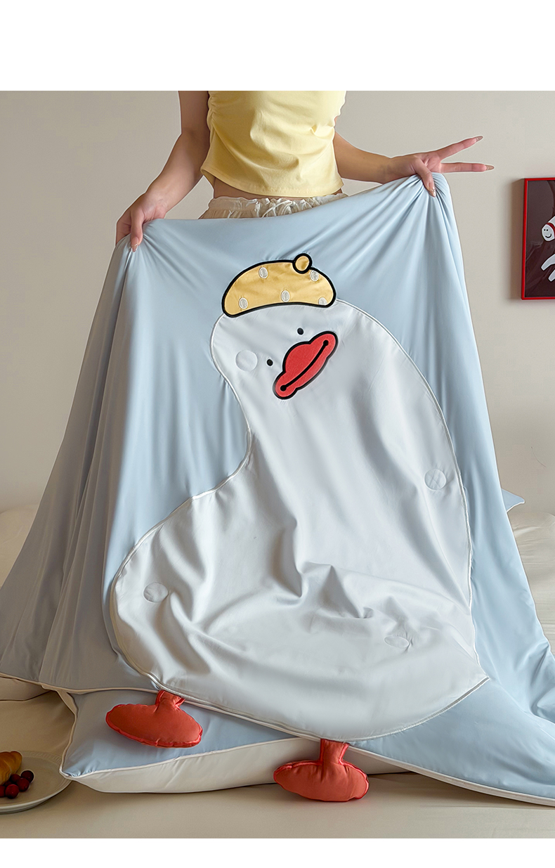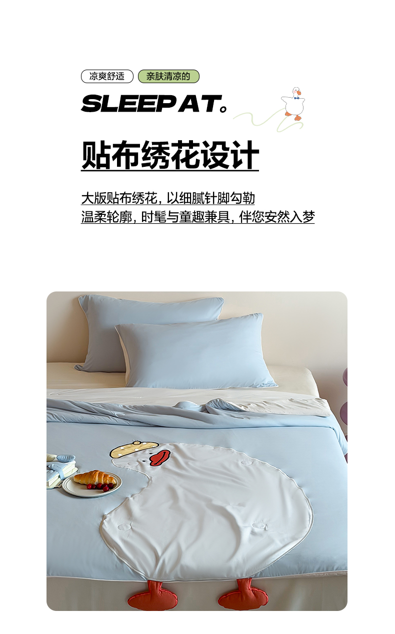 商品名称:佳汐蓝家纺 2026新款大版贴布绣花霜呼吸-凉感被夏被夏凉被空调被 歪头鸭