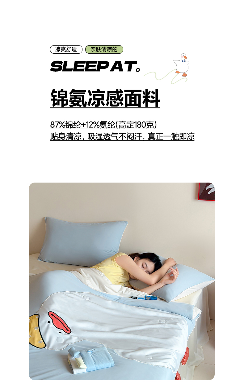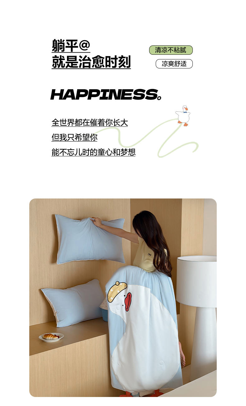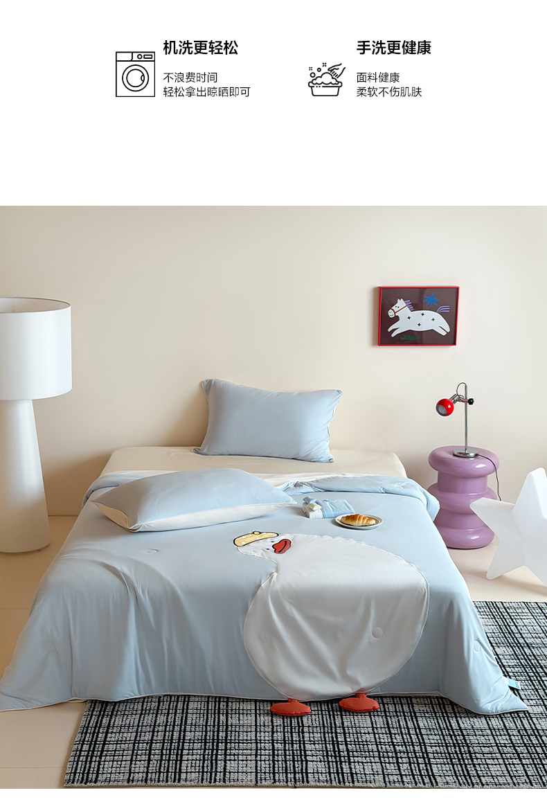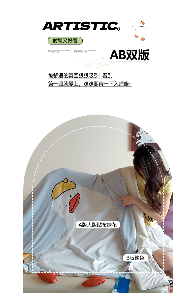 商品名称:佳汐蓝家纺 2026新款大版贴布绣花霜呼吸-凉感被夏被夏凉被空调被 歪头鸭