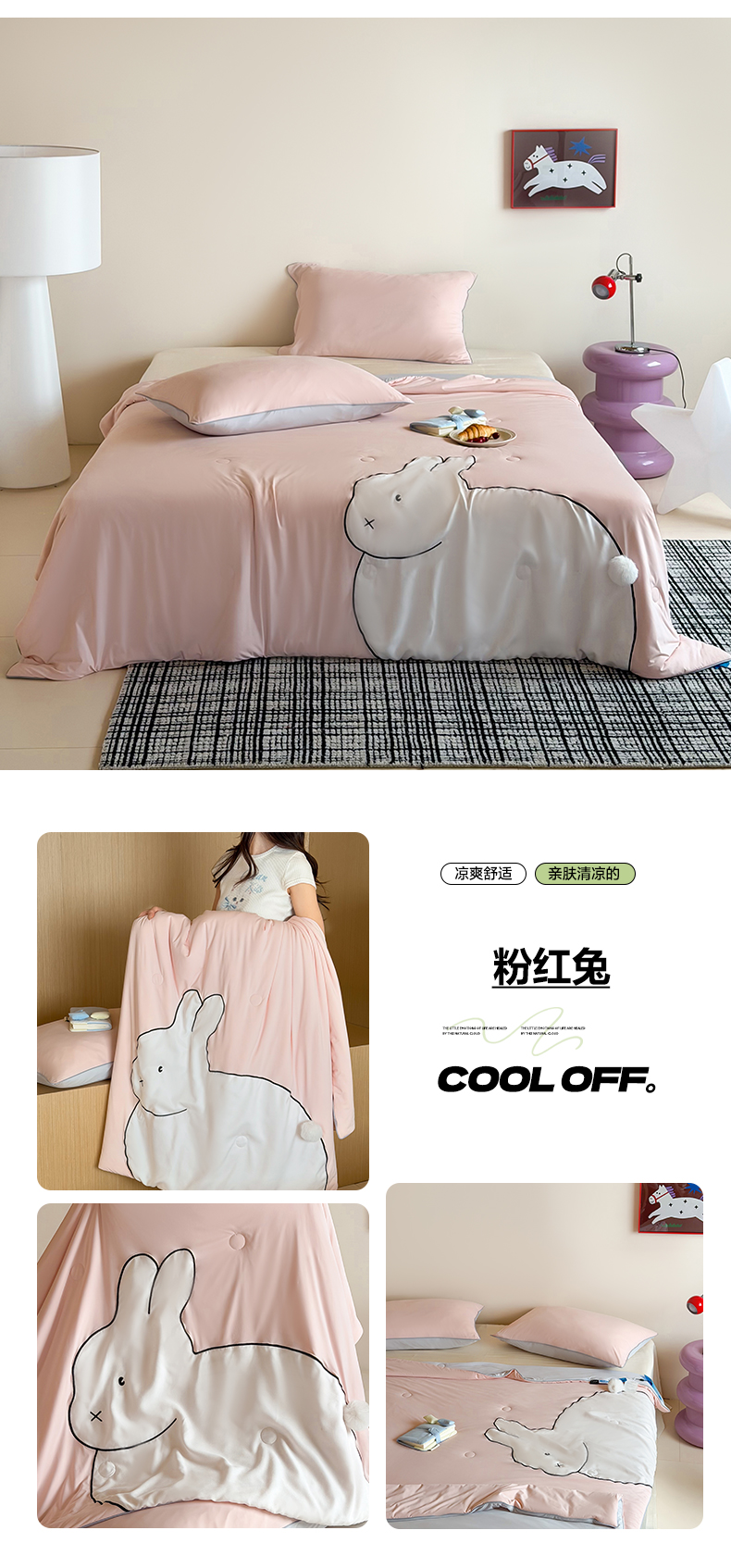 (总)佳汐蓝家纺 2026新款大版贴布绣花霜呼吸-凉感被夏被夏凉被空调被,淘气潘达,粉红兔,歪头鸭,围巾小狗