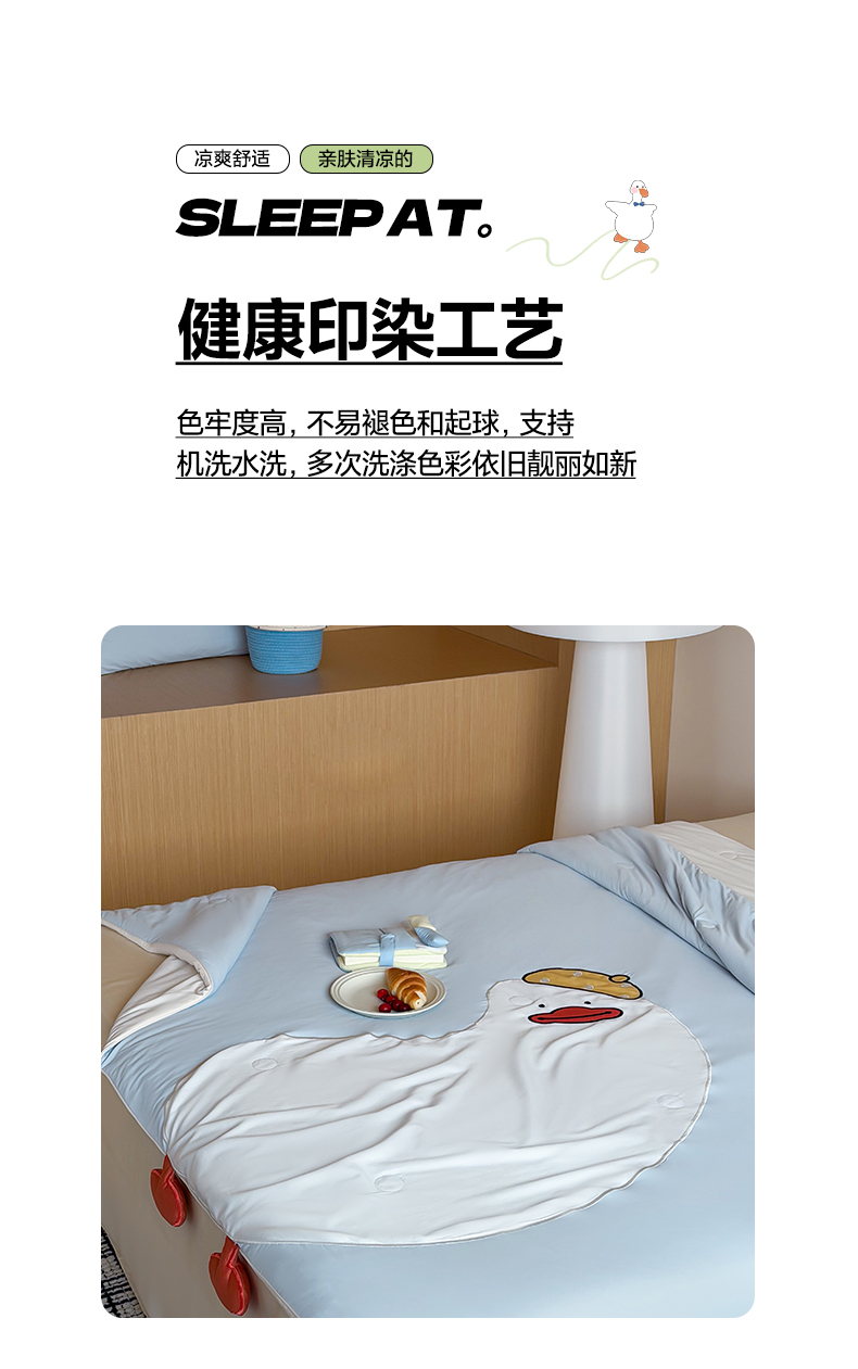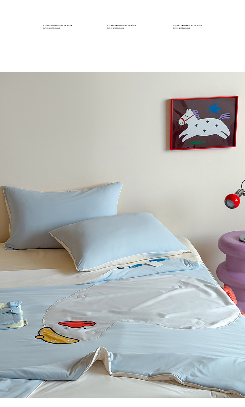 佳汐蓝家纺 2026新款大版贴布绣花霜呼吸-凉感被夏被夏凉被空调被 歪头鸭
