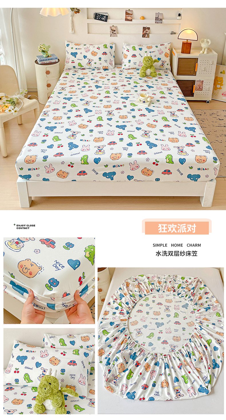 纽缦家纺 2026新款A类水洗棉学生床笠系列 小熊冰淇淋