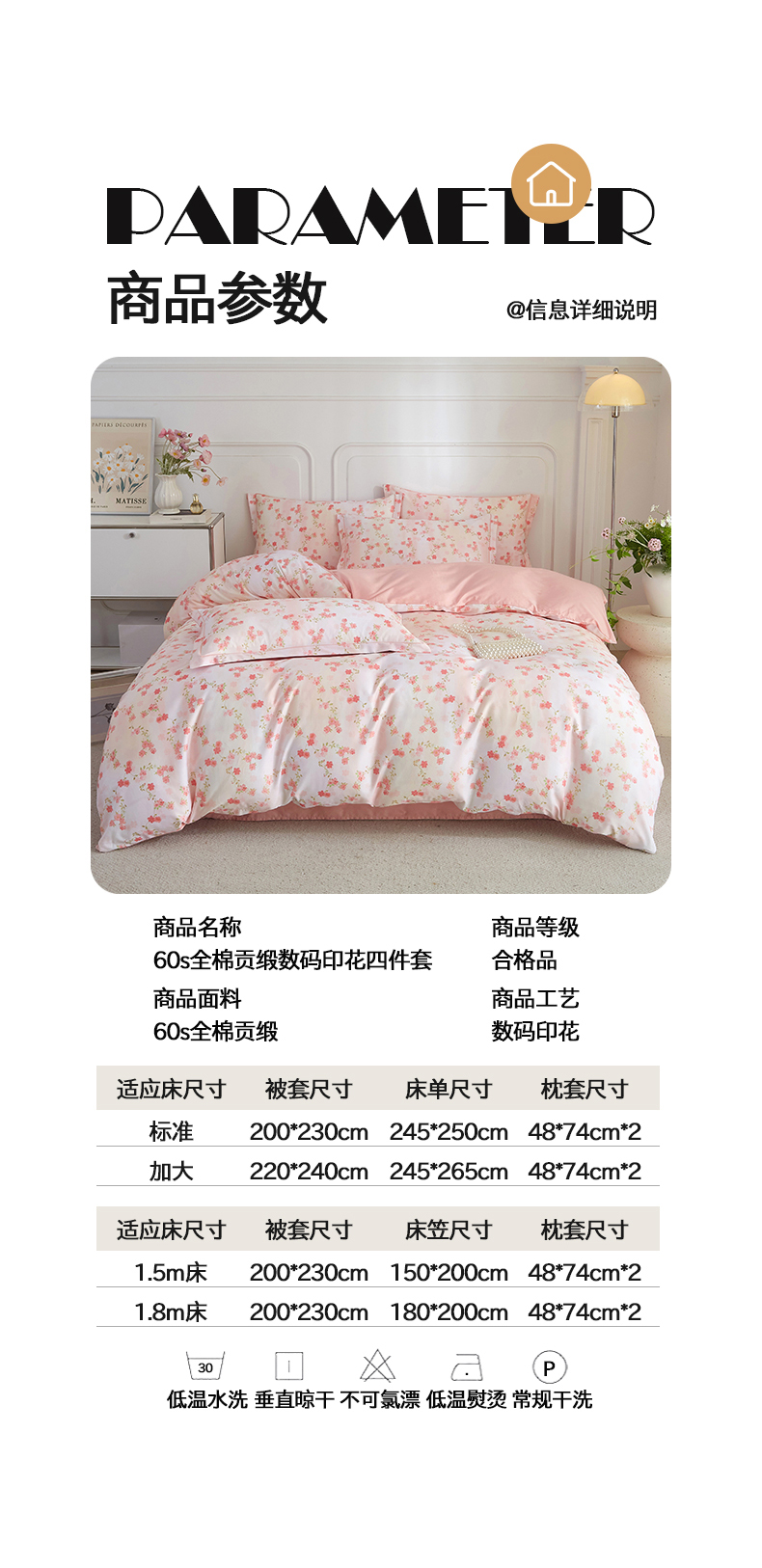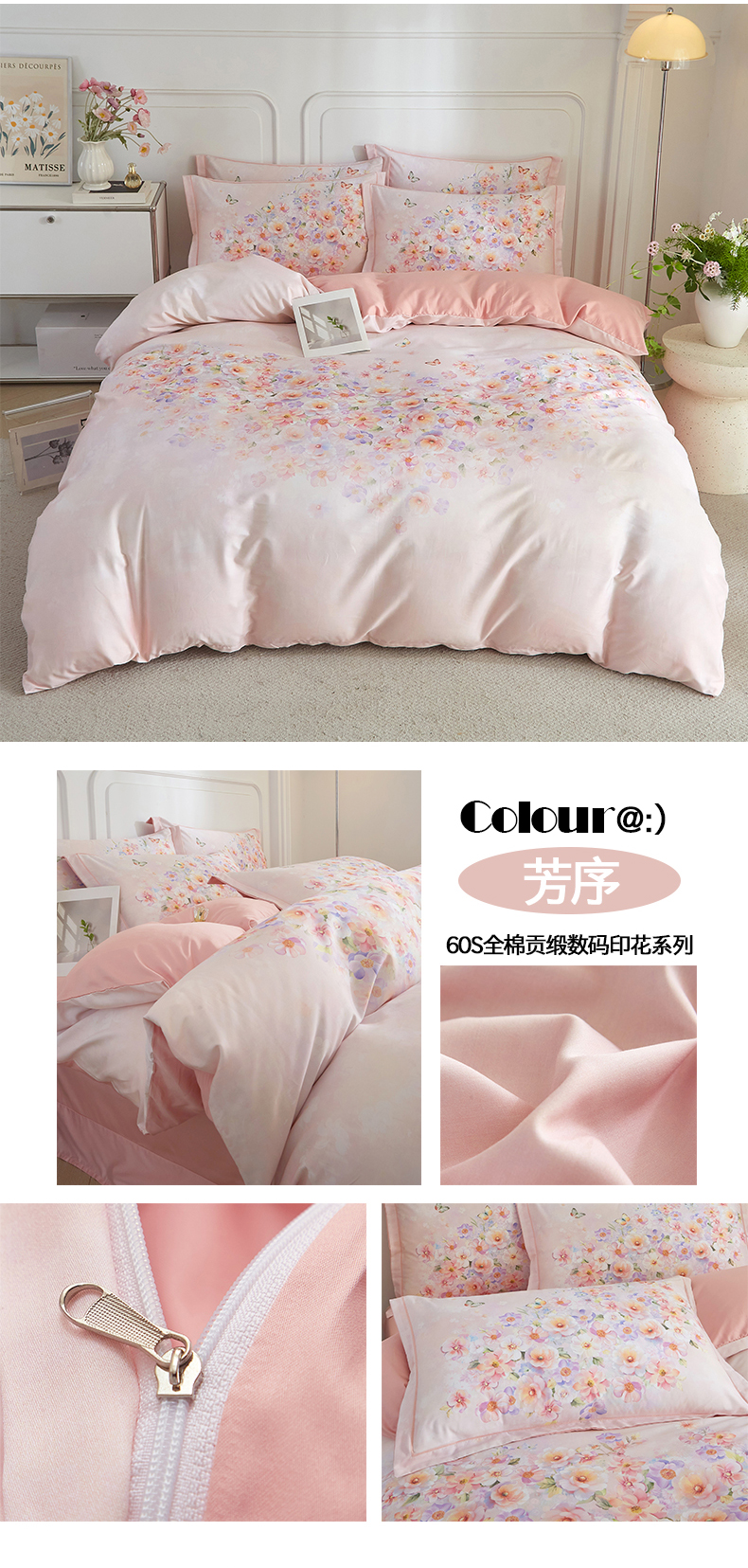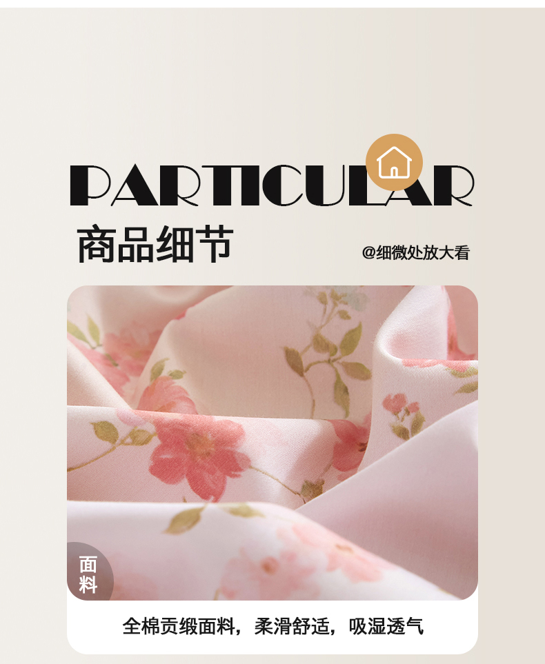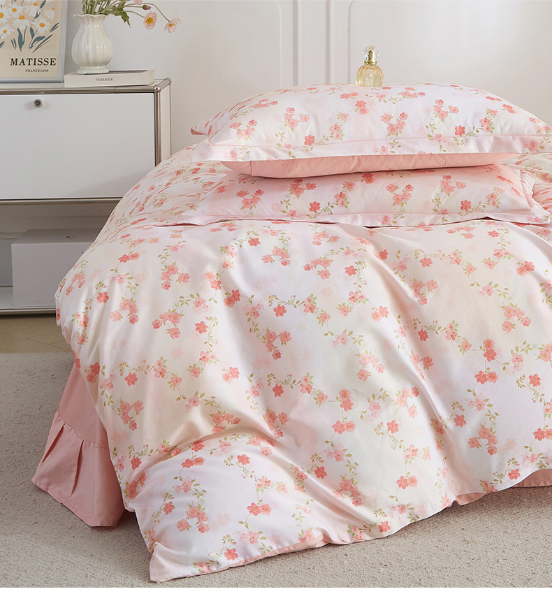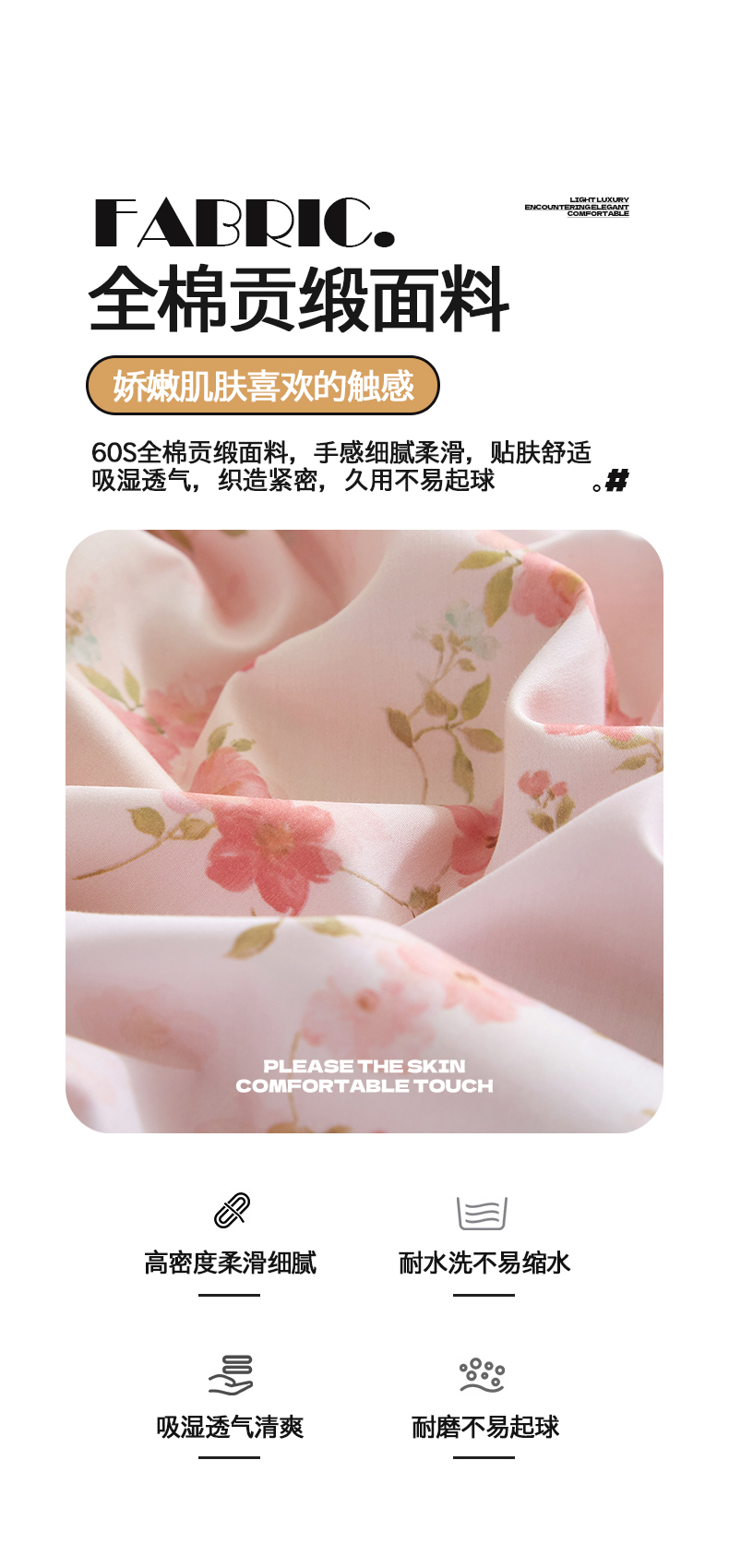 当前位置: 91家纺网 > 商品网购 > 床品套件 > 四件套 > 全棉普通四件套 > 锦彩家居 2026新款全棉纯棉印花60支贡缎新疆长绒棉四件套-山月记系列 樱落