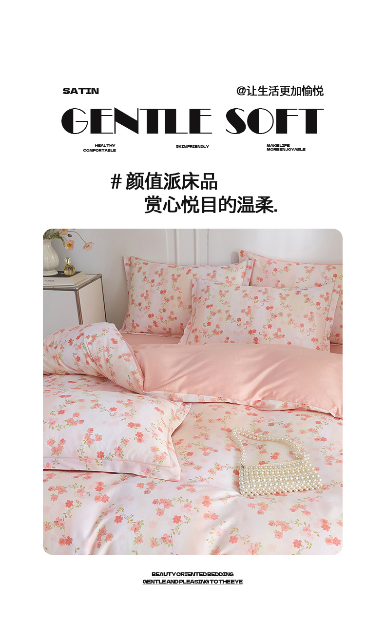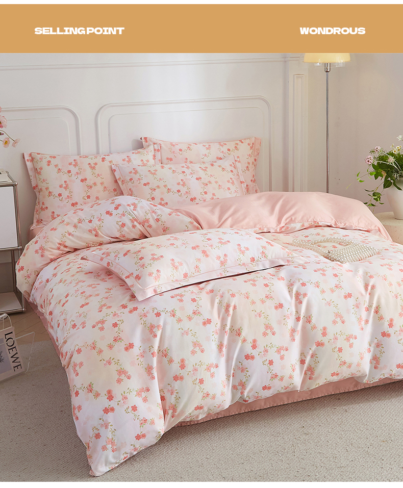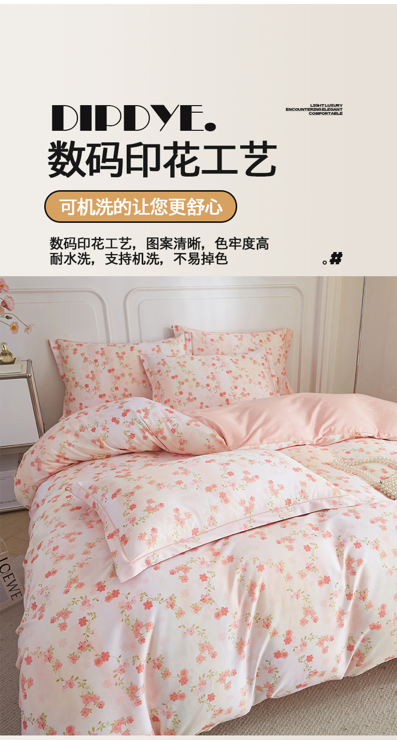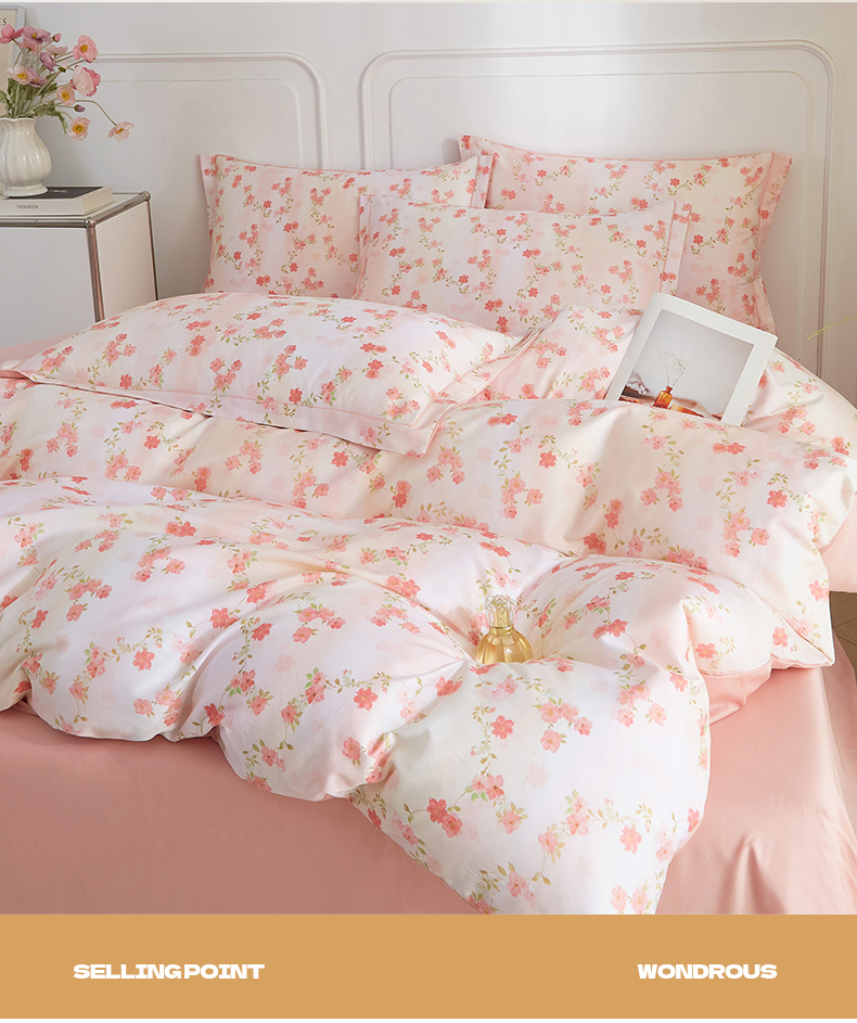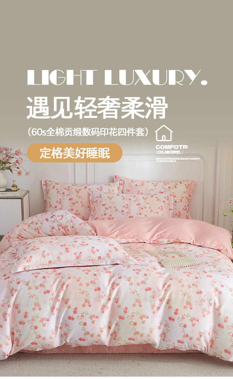 当前位置: 91家纺网 > 商品网购 > 床品套件 > 四件套 > 全棉普通四件套 > 锦彩家居 2026新款全棉纯棉印花60支贡缎新疆长绒棉四件套-山月记系列 樱落