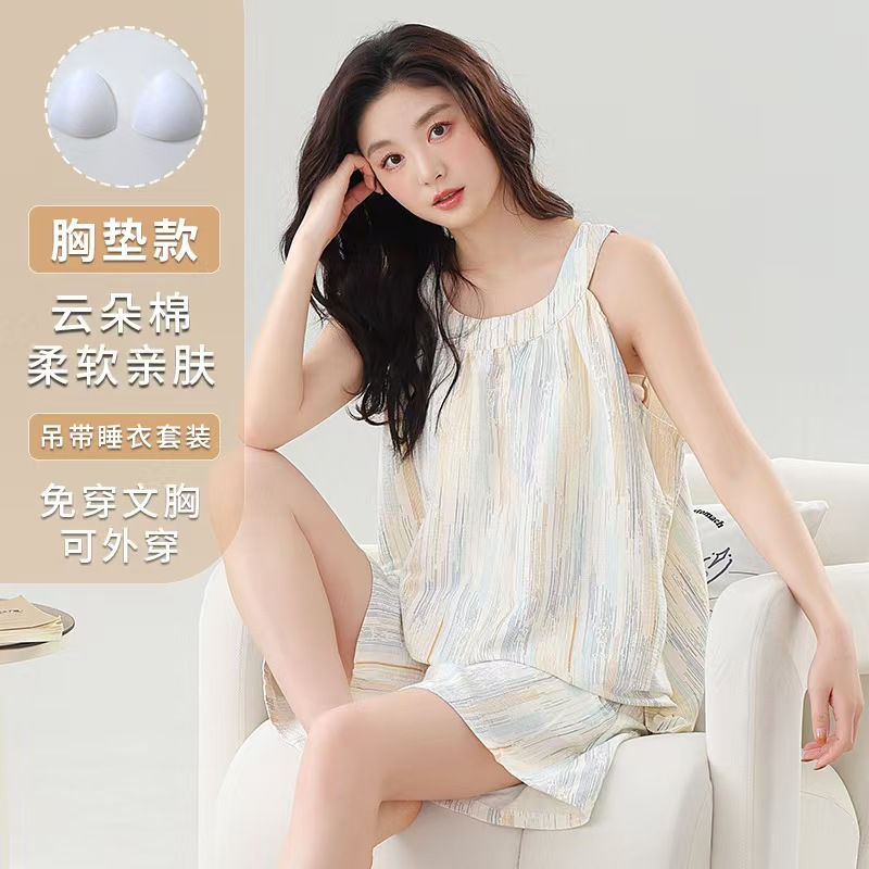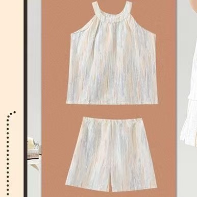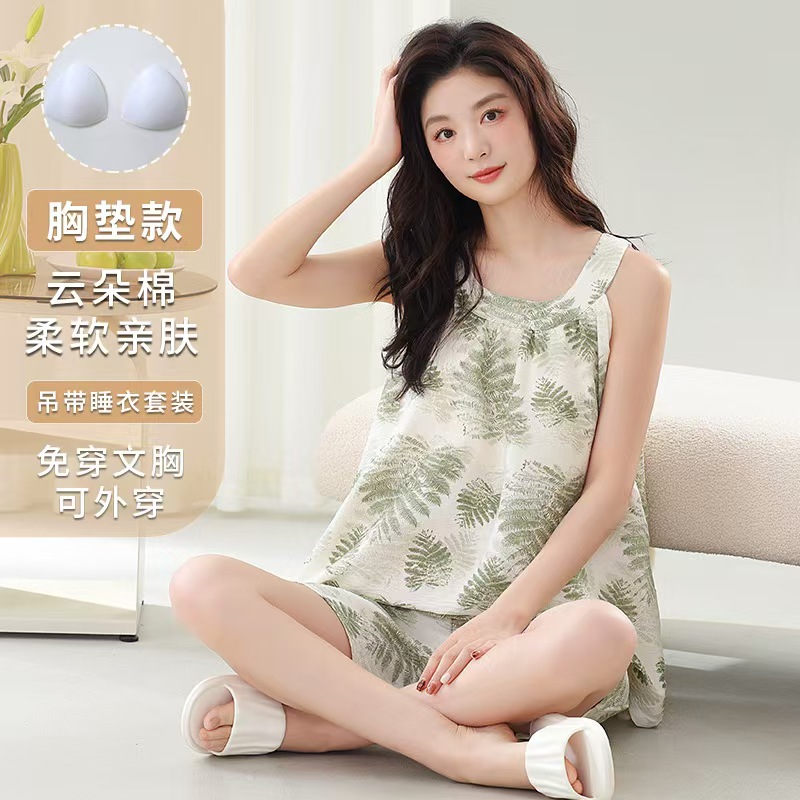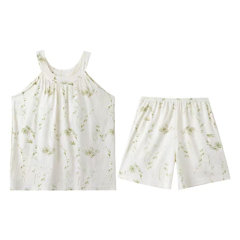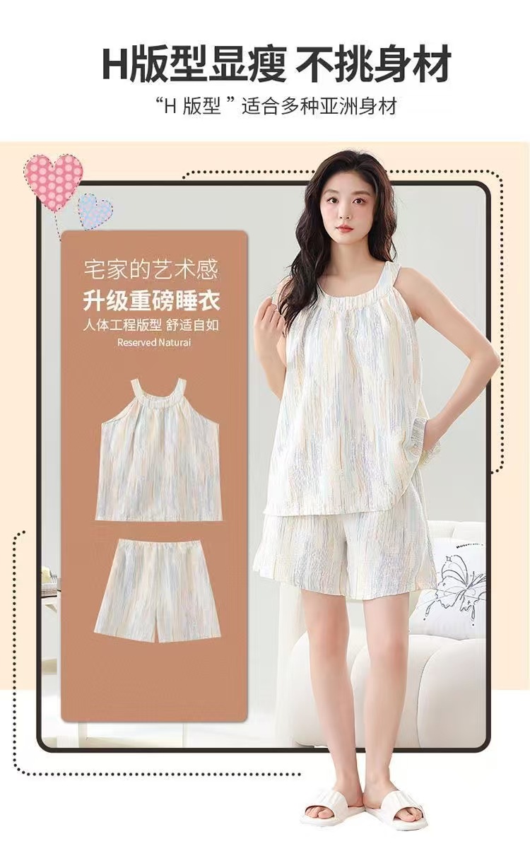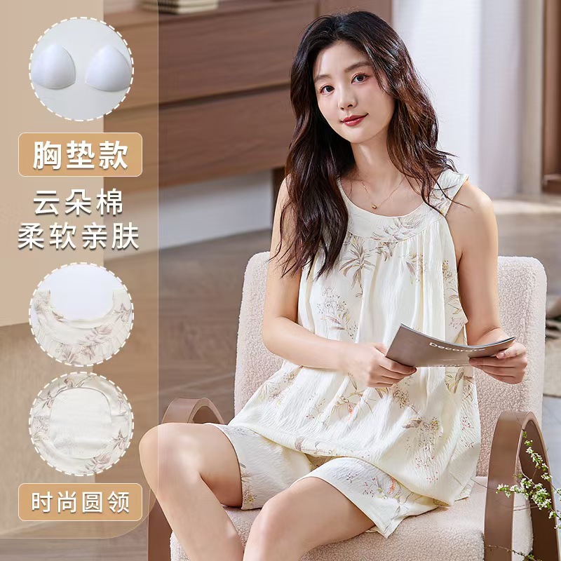 (总)洛兰沙家居馆 睡衣女款爆款2026新款夏季出门款短袖纯棉外出洋气女士套装家居服,白色