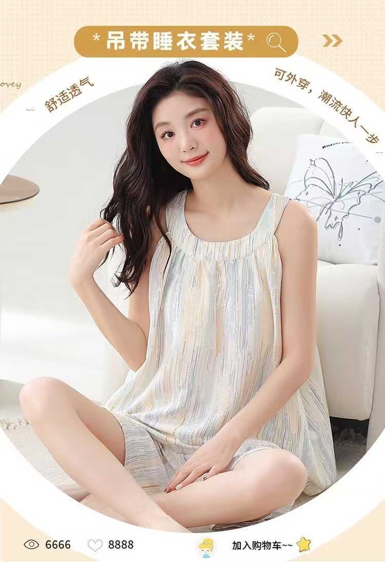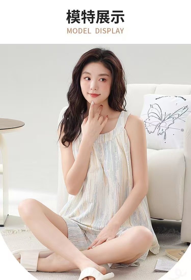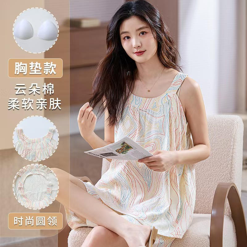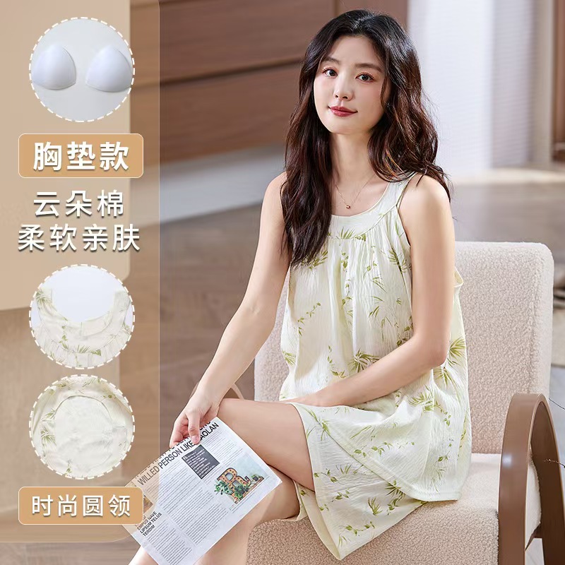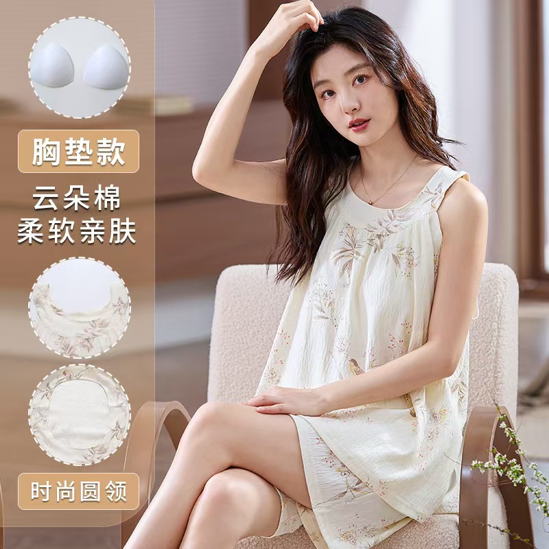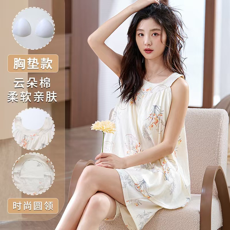 (总)洛兰沙家居馆 新款睡裙夏季花边针织棉公主风家居服宽松女士棉全棉连衣裙可外穿,白色