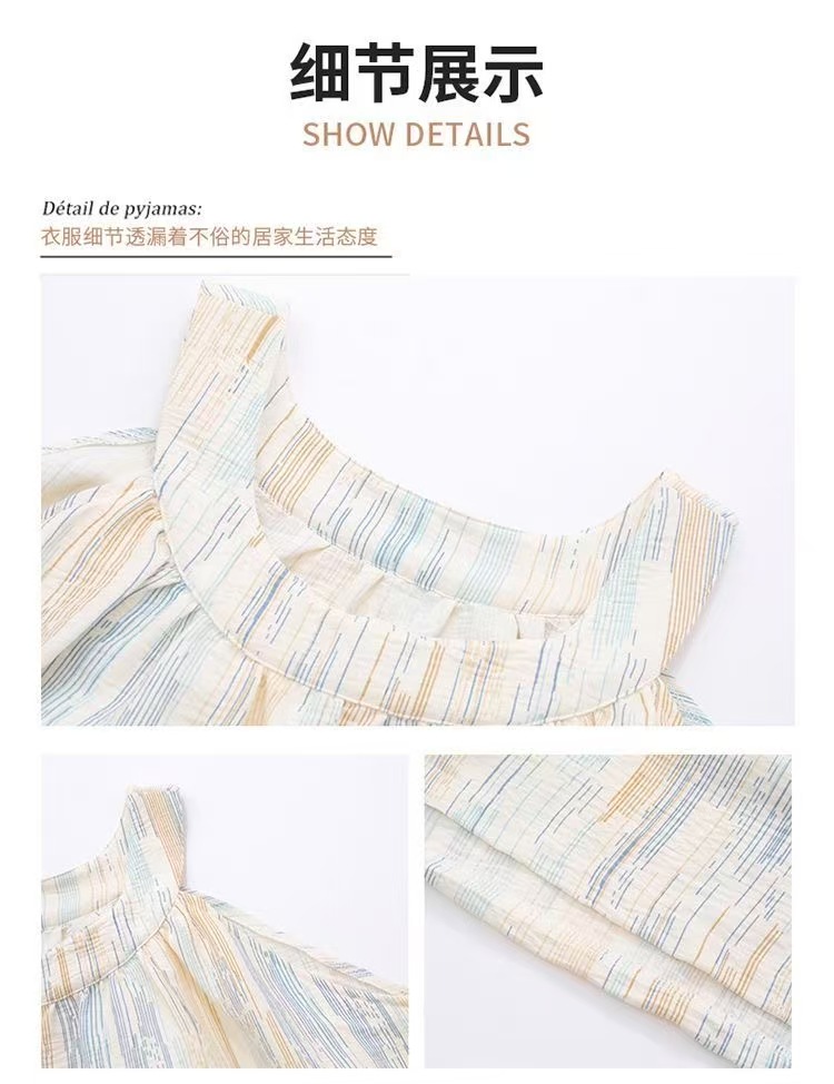 (总)洛兰沙家居馆 2026春夏新品睡裙女菲边棉纱甜美公主风长袖薄款可外穿家居服睡裙,花色1,花色2(紫色),花色3