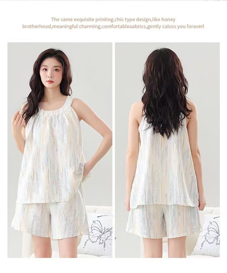 (总)洛兰沙家居馆 日系夏季莫代尔棉短袖长裤家居服休闲宽松舒适大码居家睡衣 ,花色1,花色2,花色3,花色4,花色5,花色6,花色7,花色8