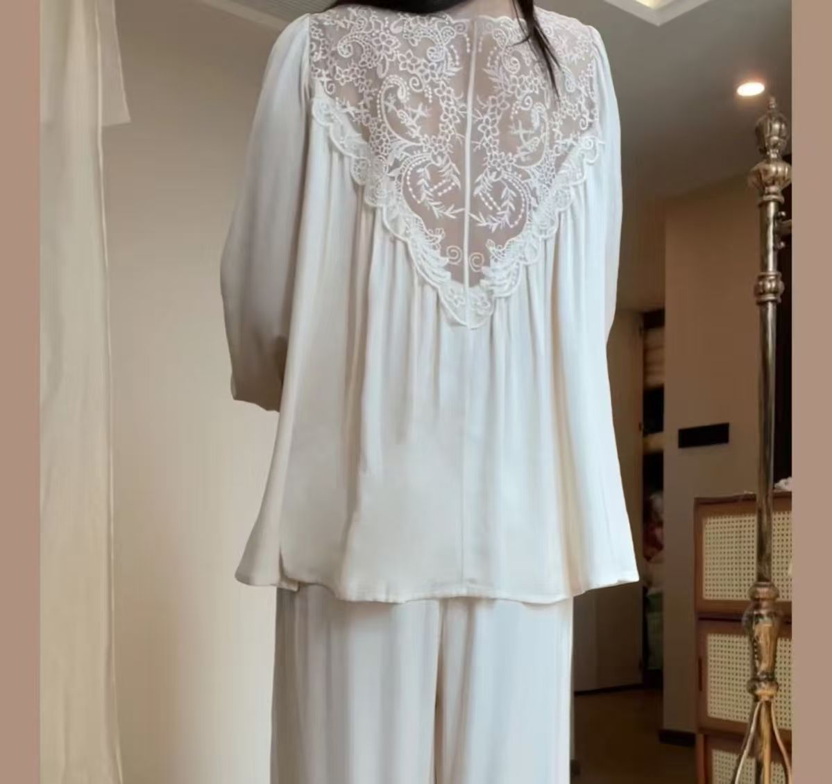 (总)洛兰沙家居馆 睡衣女款爆款2026新款夏季出门款短袖纯棉外出洋气女士套装家居服,白色