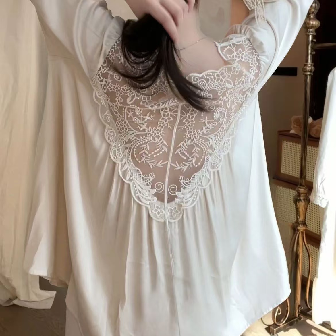 (总)洛兰沙家居馆 新款睡裙夏季花边针织棉公主风家居服宽松女士棉全棉连衣裙可外穿,白色