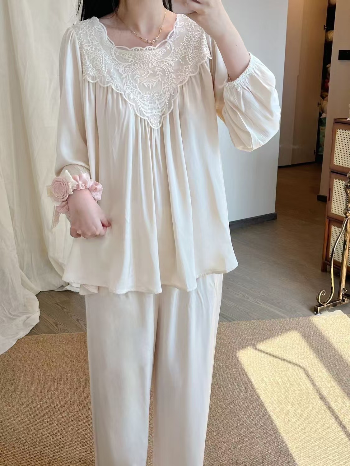 商品名称:(总)洛兰沙家居馆 睡衣女款爆款2026新款春秋长袖夏季春夏薄款女士莫代尔家居服套装