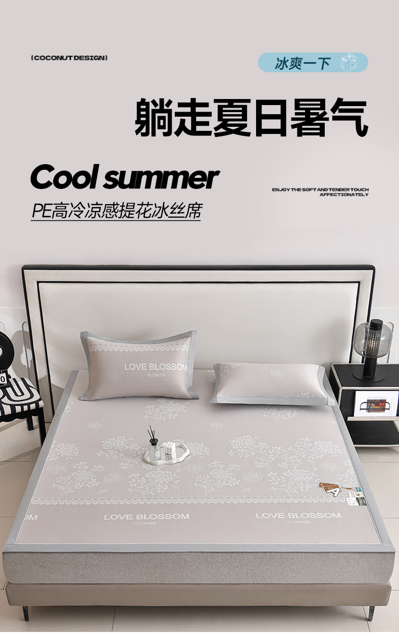 商品名称:小牛席业 2026新款PE凉感清新叶语冰丝席凉席席子 香槟