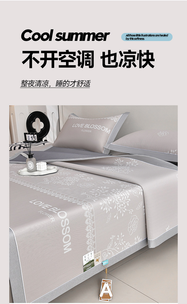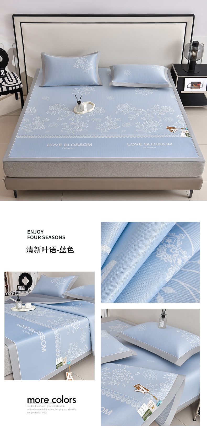 (总)小牛席业 2026新款PE凉感清新叶语冰丝席凉席席子,粉色,灰色,蓝色,香槟