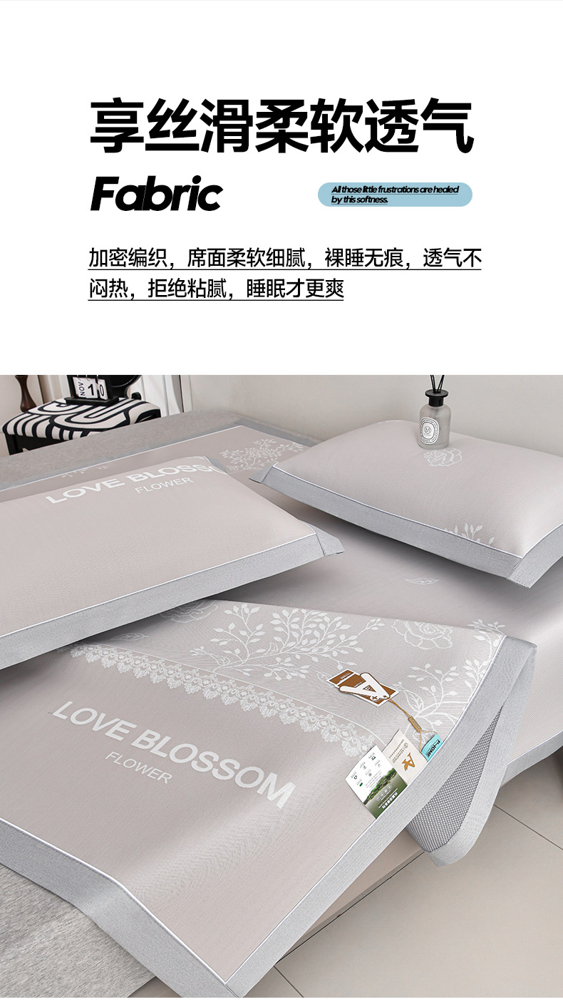 (总)2023新款超精密冰丝席-小斜纹系列-床笠款藤席凉席竹席,粉色,蓝色,绿色,银灰