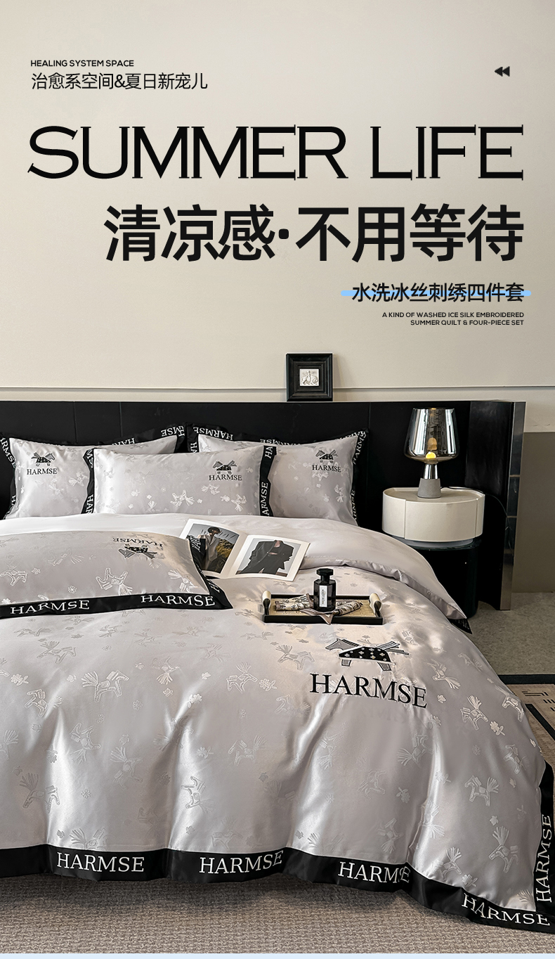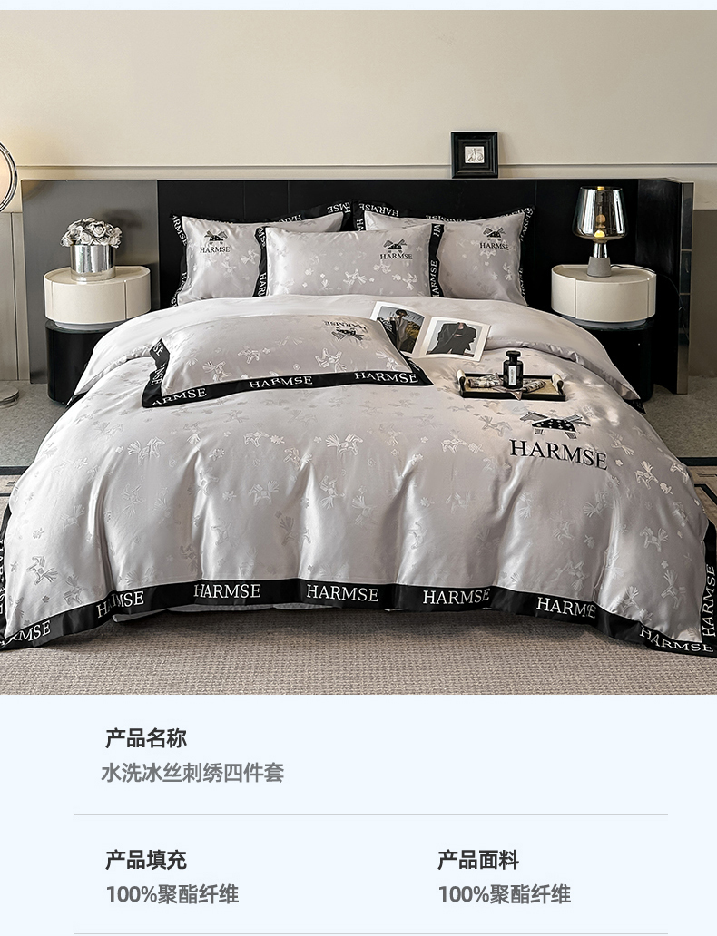 当前位置: 91家纺网 > 商品网购 > 床品套件 > 四件套 > 水洗真丝四件套 > 笙意家纺 2026新款水洗冰丝刺绣宽边四件套-马力全开 马力全开-山灰
