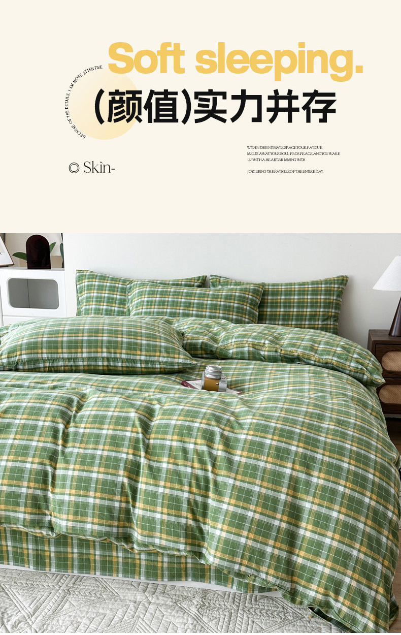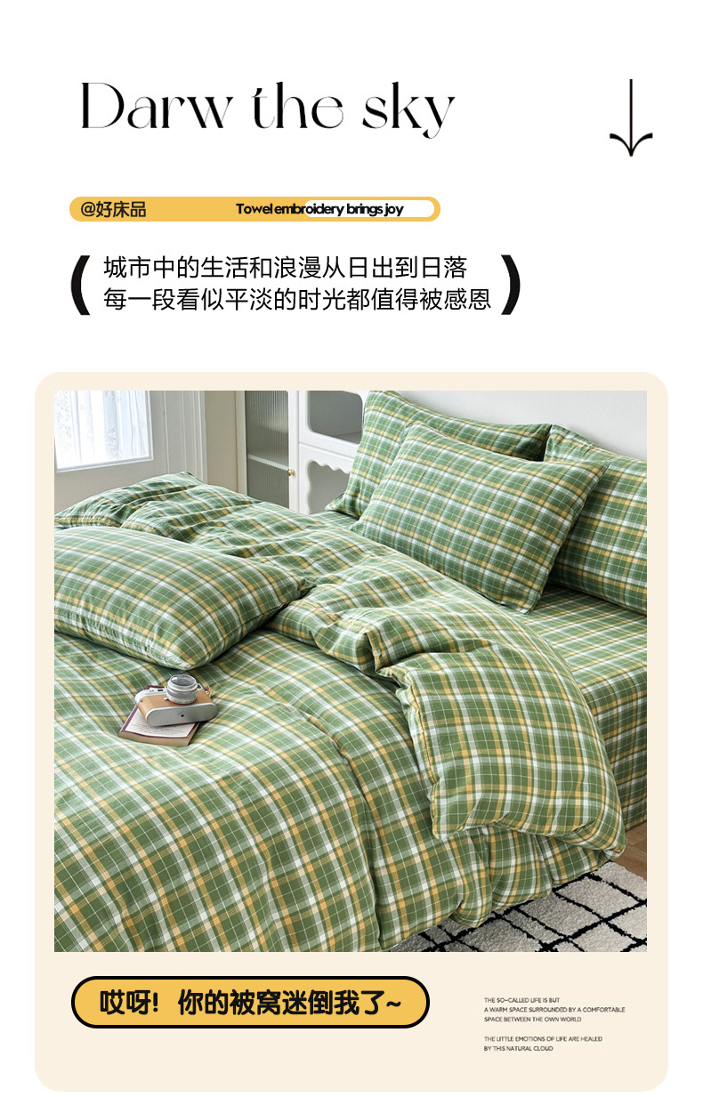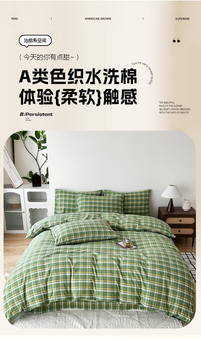 当前位置: 91家纺网 > 商品网购 > 床品套件 > 四件套 > 全棉普通四件套 > 蓝梦 2026新款全棉纯棉色织水洗棉简约四件套-繁花 繁花-绿