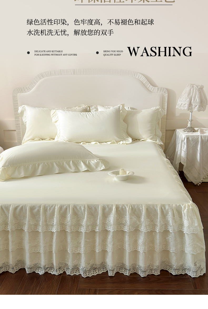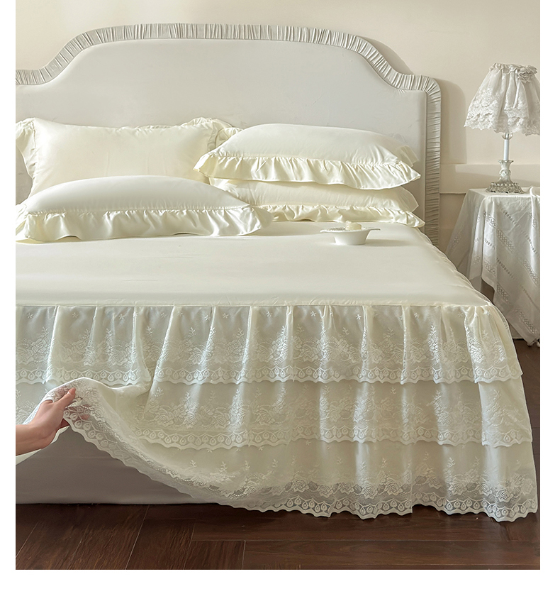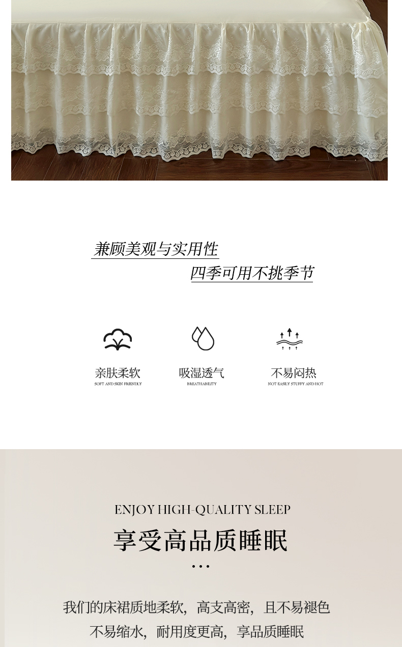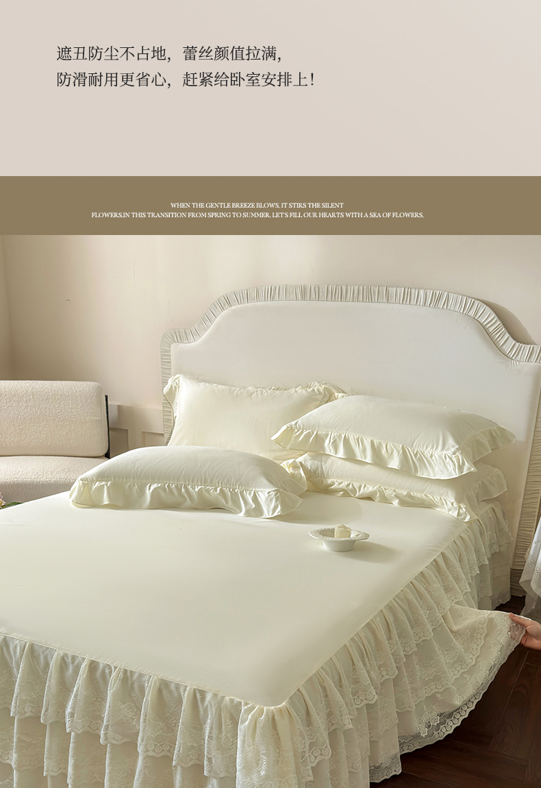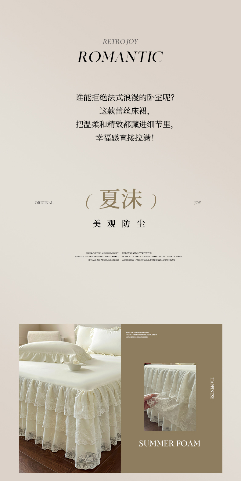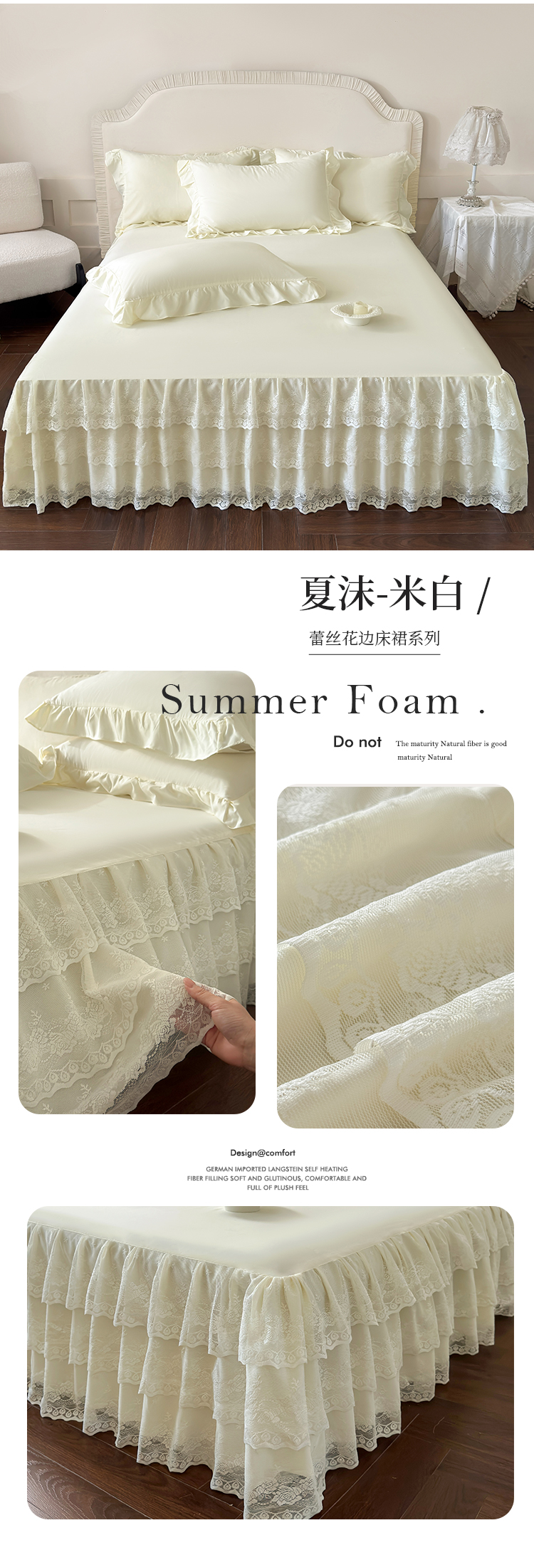 商品名称:乐朵家居 2026新款 26-1 夏沫 蕾丝床裙 米白