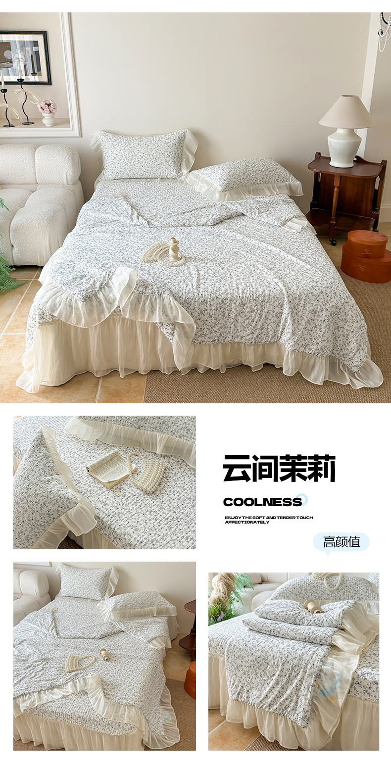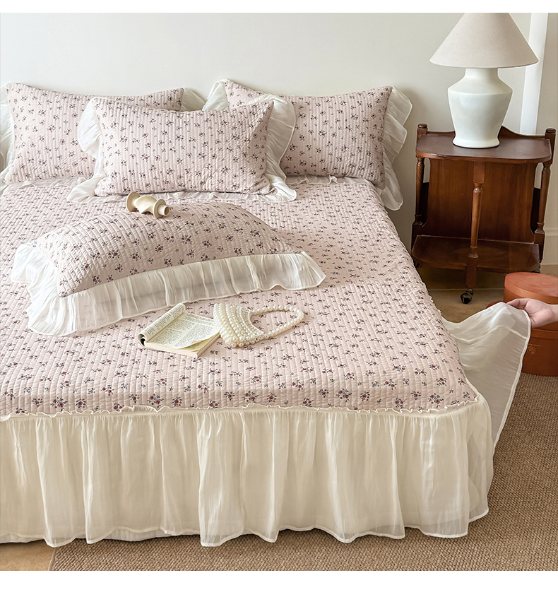 (总)吾欢心 2025新款公主风雪纺边四季通用夹棉床盖,床盖白,床盖粉,床盖黄,床盖咖,床盖绿,床盖抹茶绿,床盖紫
