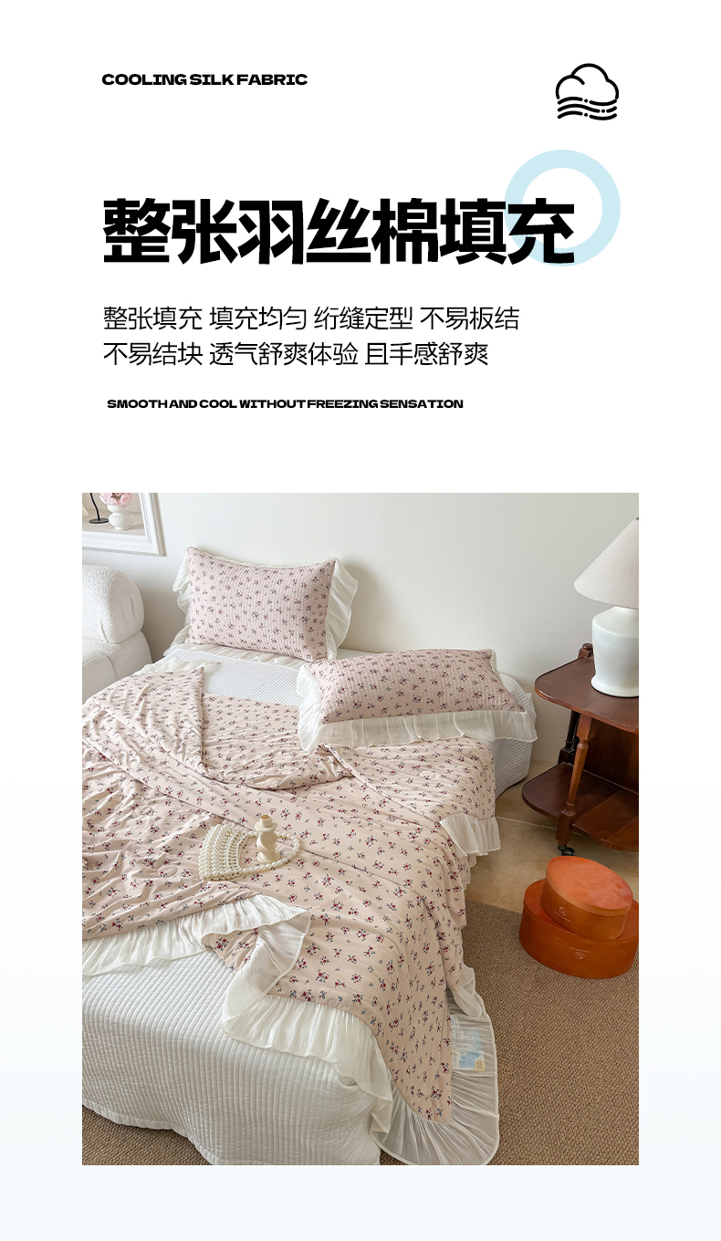 商品名称:吾欢心 2026新款仿锦安法式花边凉感丝床盖款夏凉被四件套软凉席三件套小冰皮空调被 雾屿玫瑰