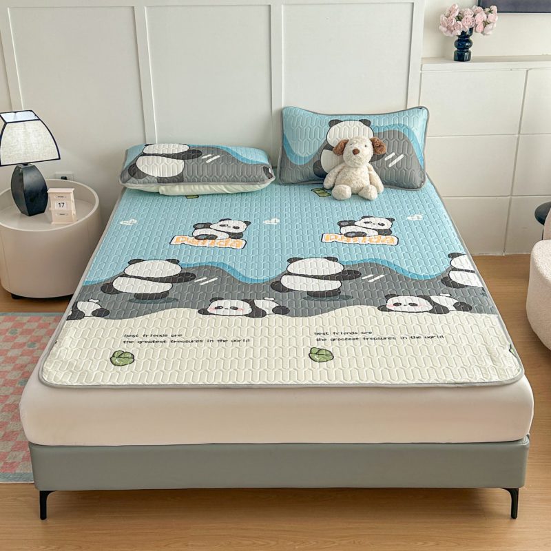 商品名称:梵克保罗 2026新款凉感丝乳胶凉席印花三件套绑带款乳胶条席床单 萌趣小熊