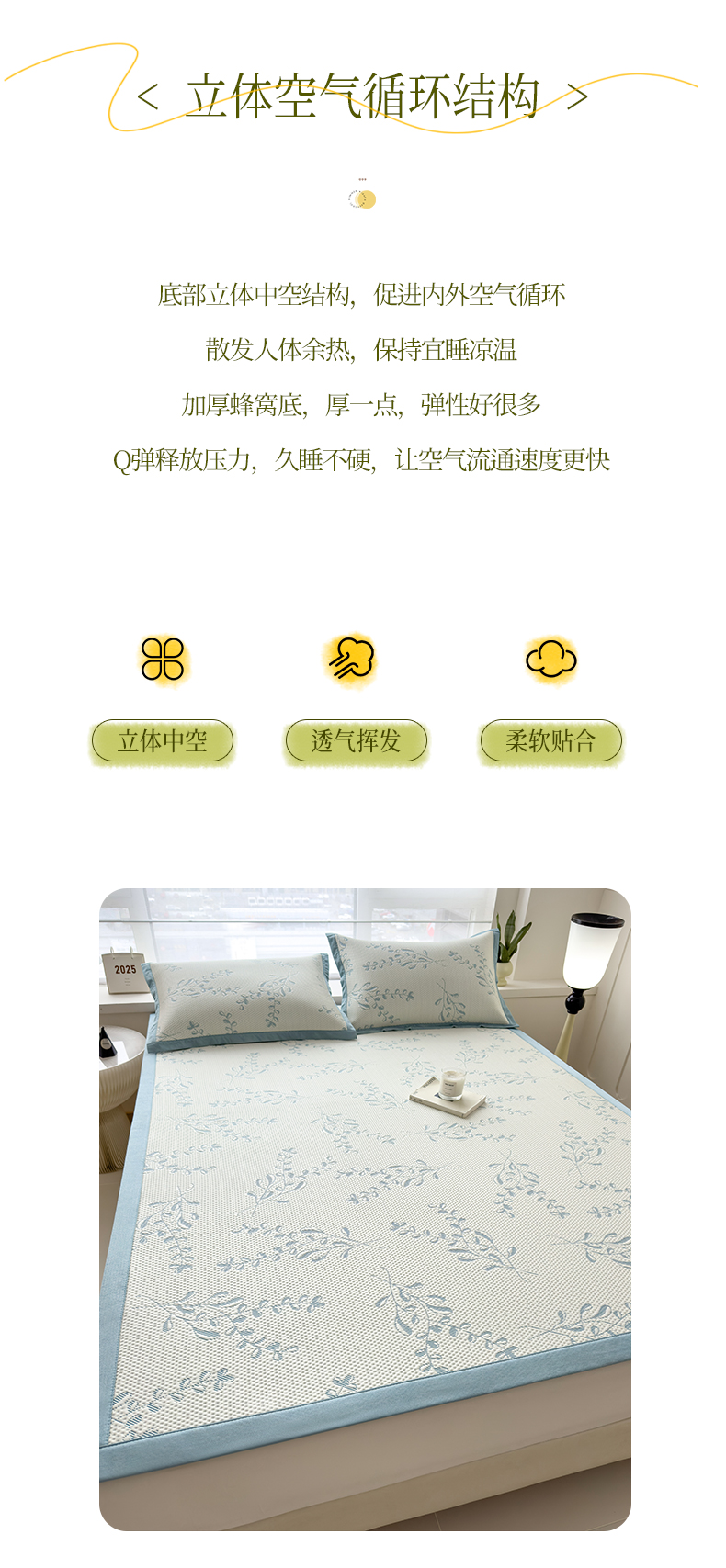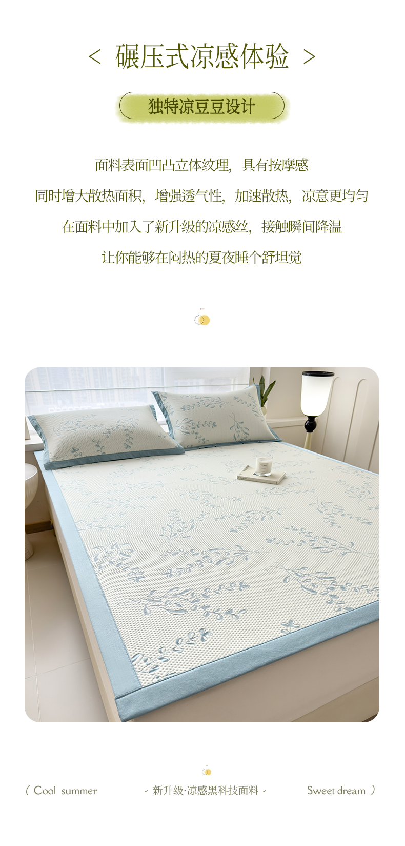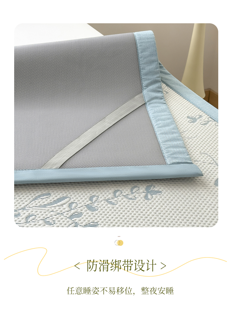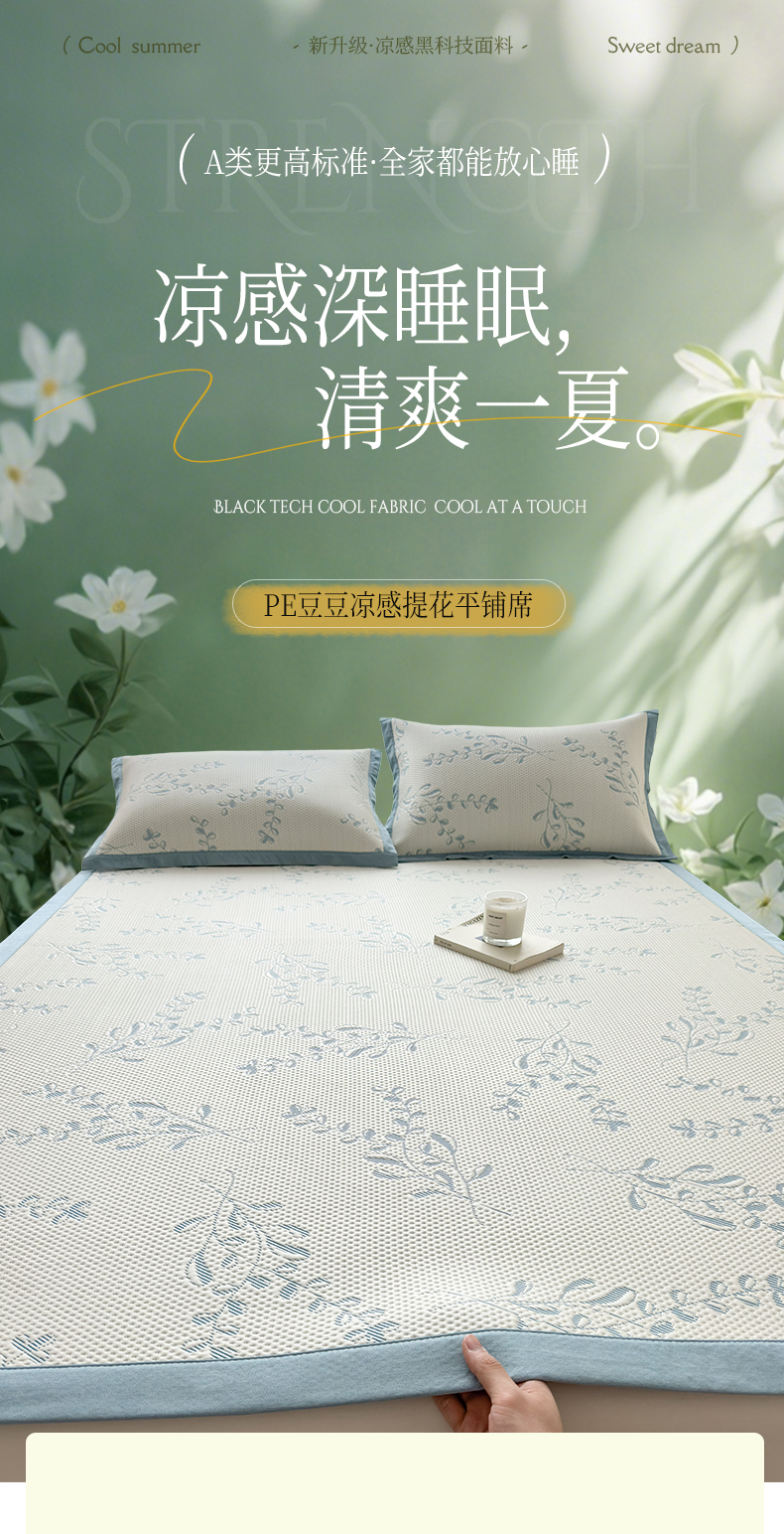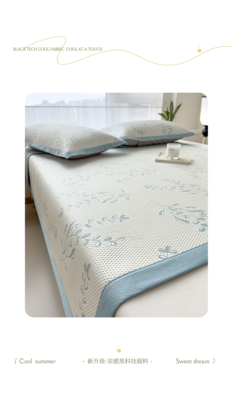 倾慕家纺 2026新款PE时尚风豆豆凉席花卉系列--床席款 夏日清新蓝床席款