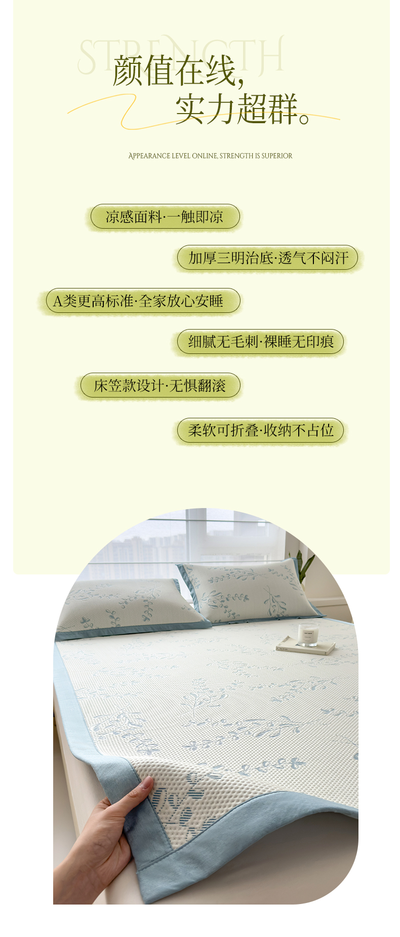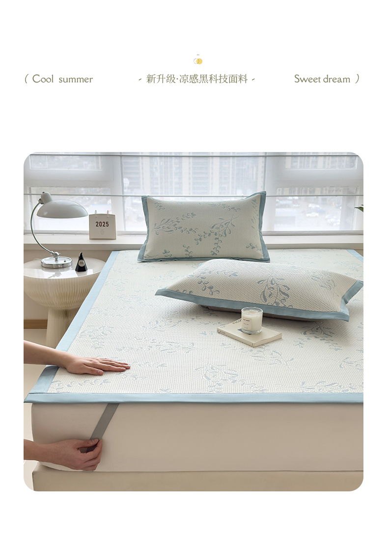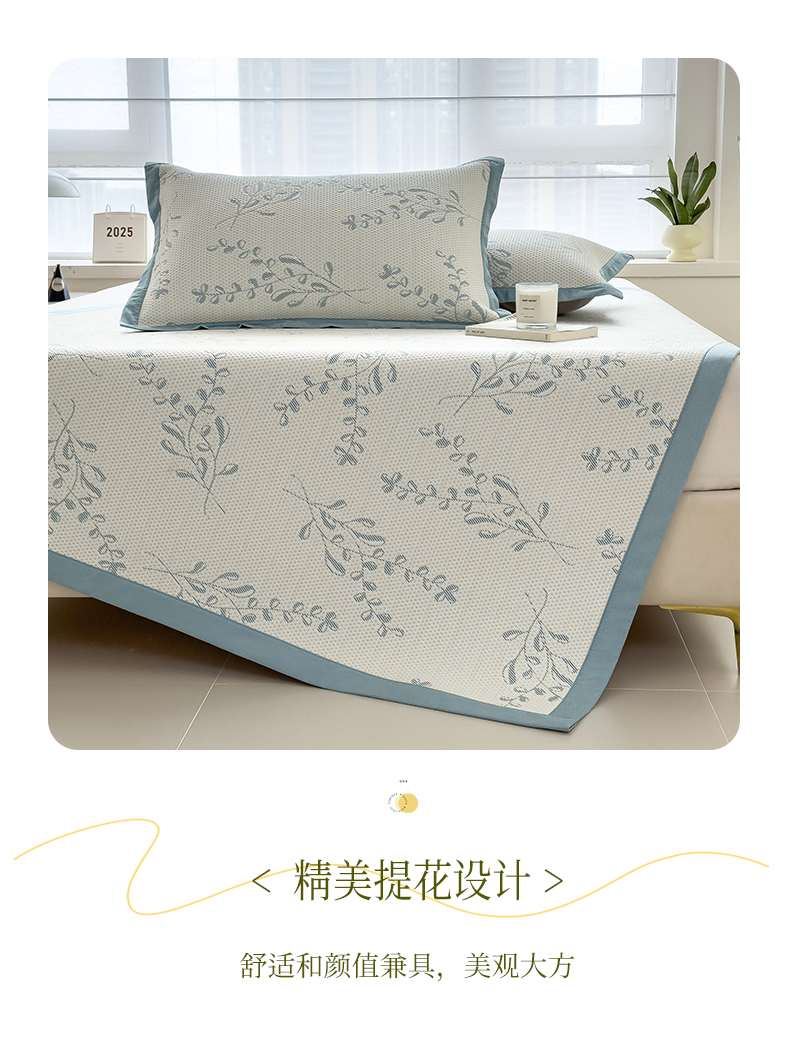 (总)倾慕家纺 2026新款PE50提花凉感冰丝凉席,花星点点粉,花星点点灰,花星点点绿,简蝶粉,简蝶蓝,叶繁粉,叶繁灰,叶繁蓝,叶繁绿,针叶粉,针叶蓝,针叶绿,组合