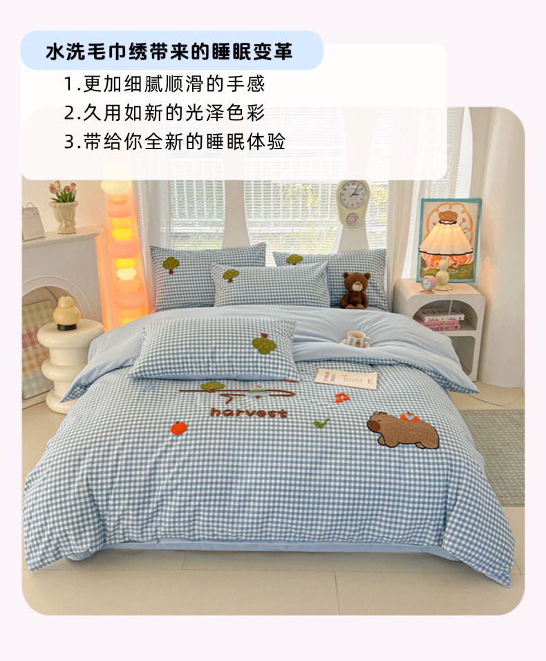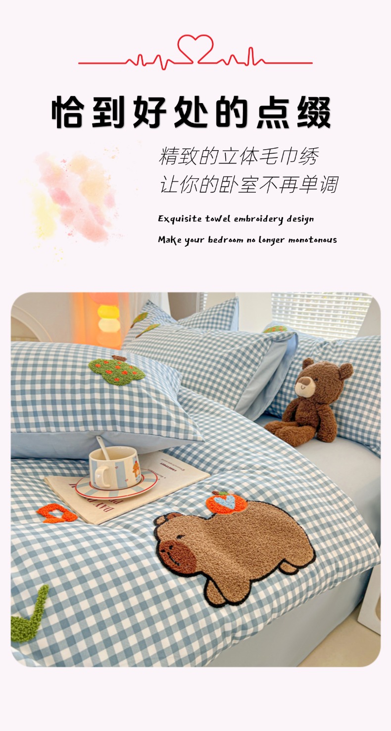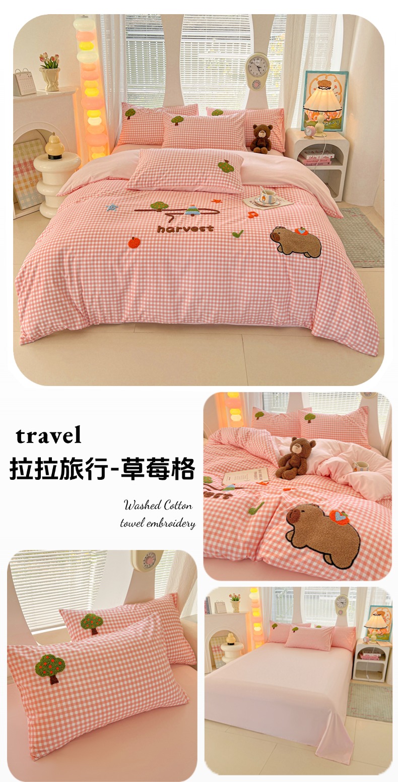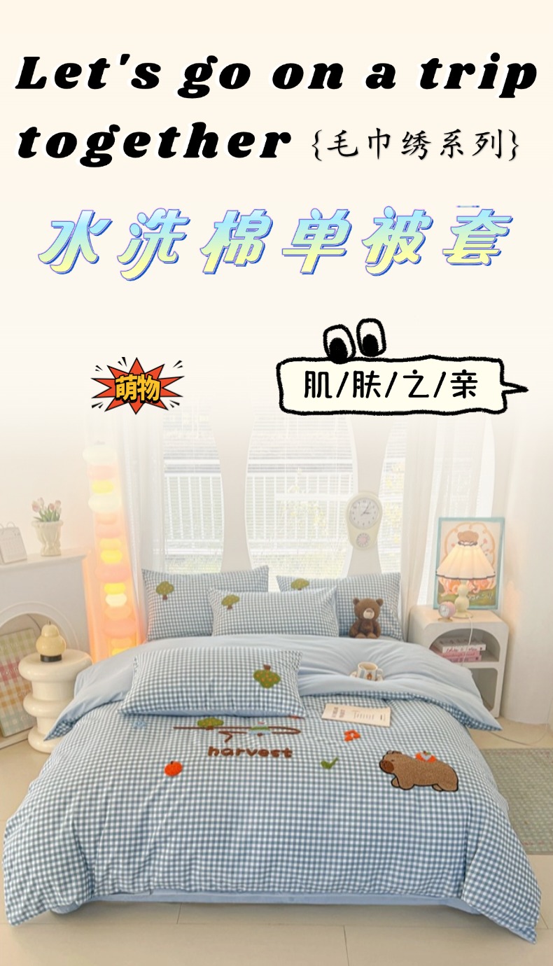 商品名称:欧妮家纺 2025新款水洗棉单被套柔软毛巾绣刺绣学生宿舍单件被罩卡通-拉拉旅行 拉拉旅行-兰色格