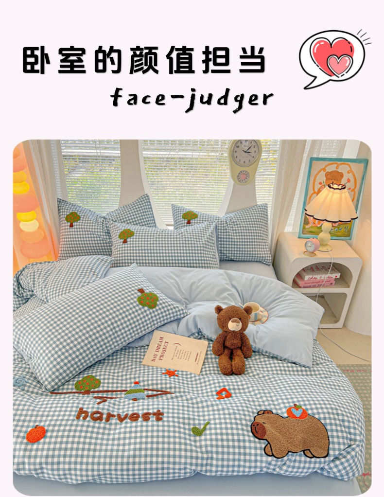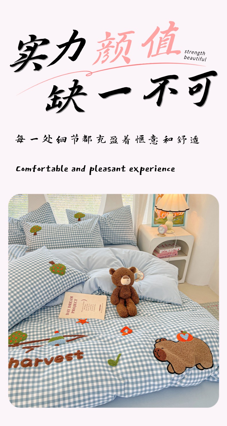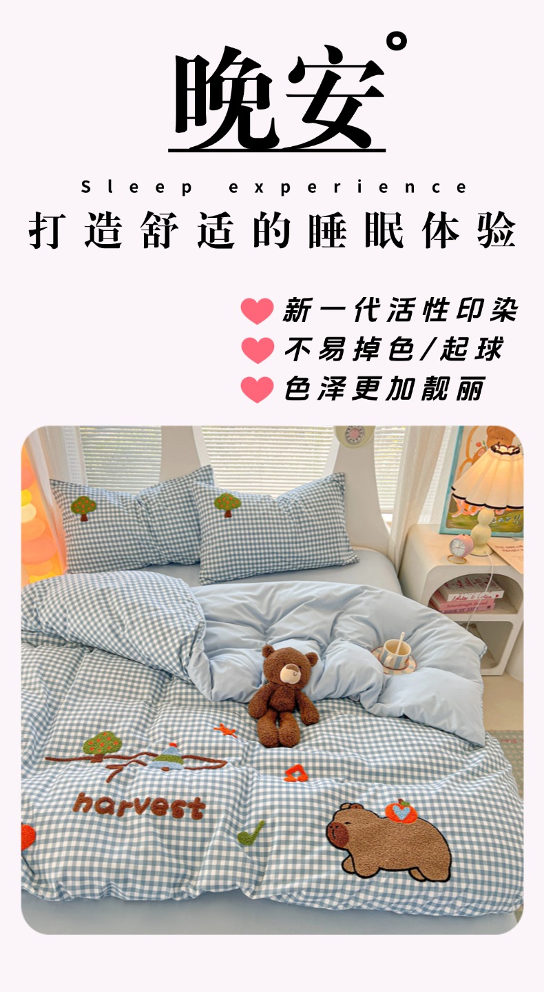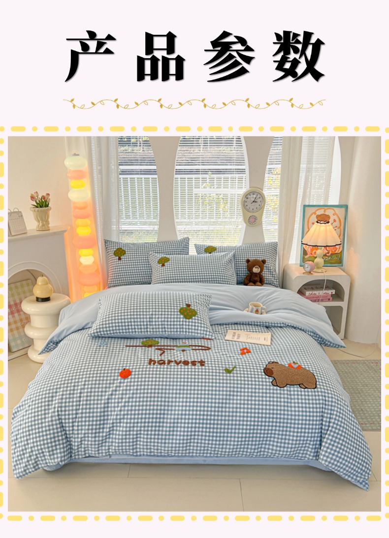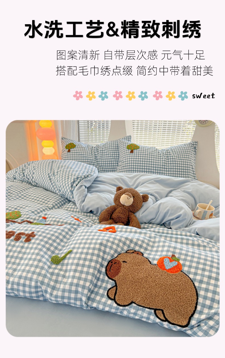 商品名称:欧妮家纺 2025新款水洗棉单被套柔软毛巾绣刺绣学生宿舍单件被罩卡通-拉拉旅行 拉拉旅行-兰色格