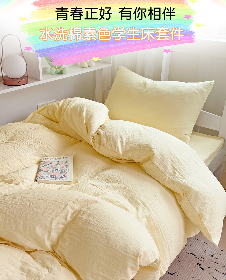 当前位置: 91家纺网 > 商品网购 > 床品套件 > 四件套 > 水洗棉四件套 > 欧妮家纺 2025新款纯色水洗棉四件套学生宿舍床单被套三件套床上用品-【含买家秀】 纯色-奶黄