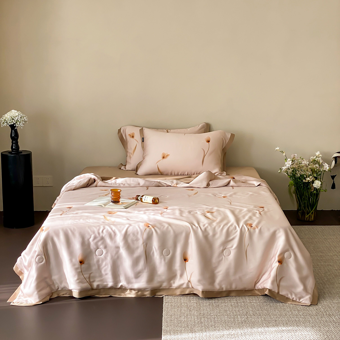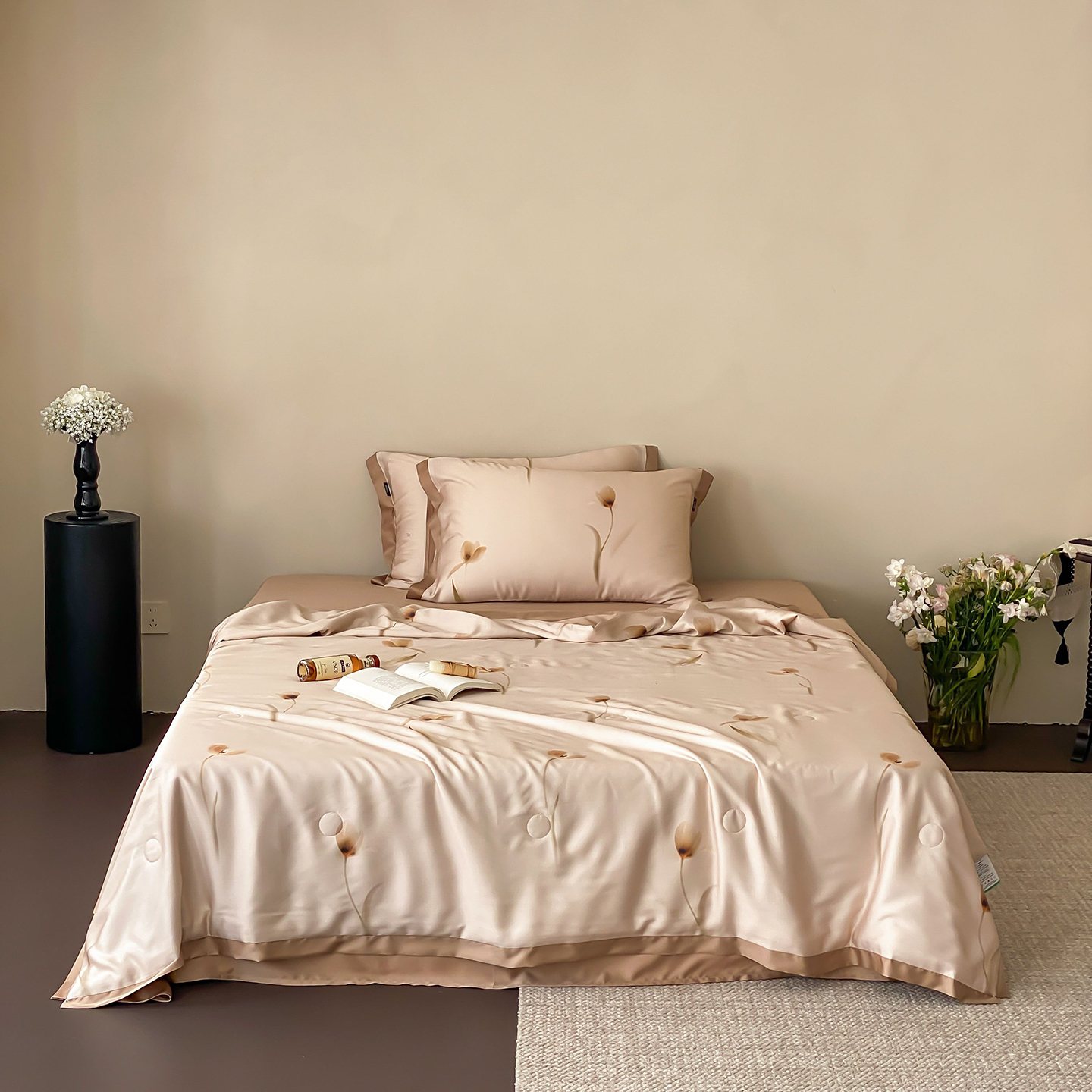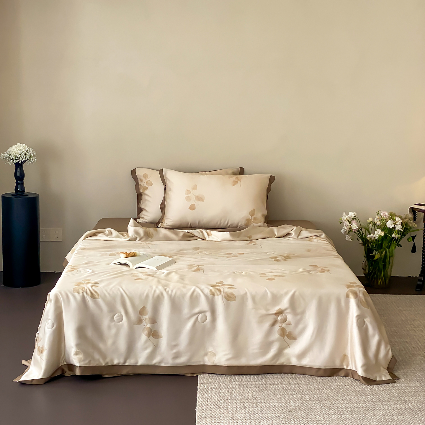 (总)玉宇阁家居 2026新款60s兰精天丝提花夏被夏凉被空调被四件套-半岛茶,半岛茶-松栗,半岛茶-松栗奶油,花影