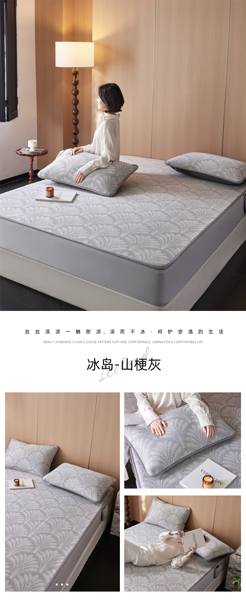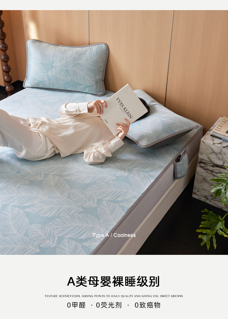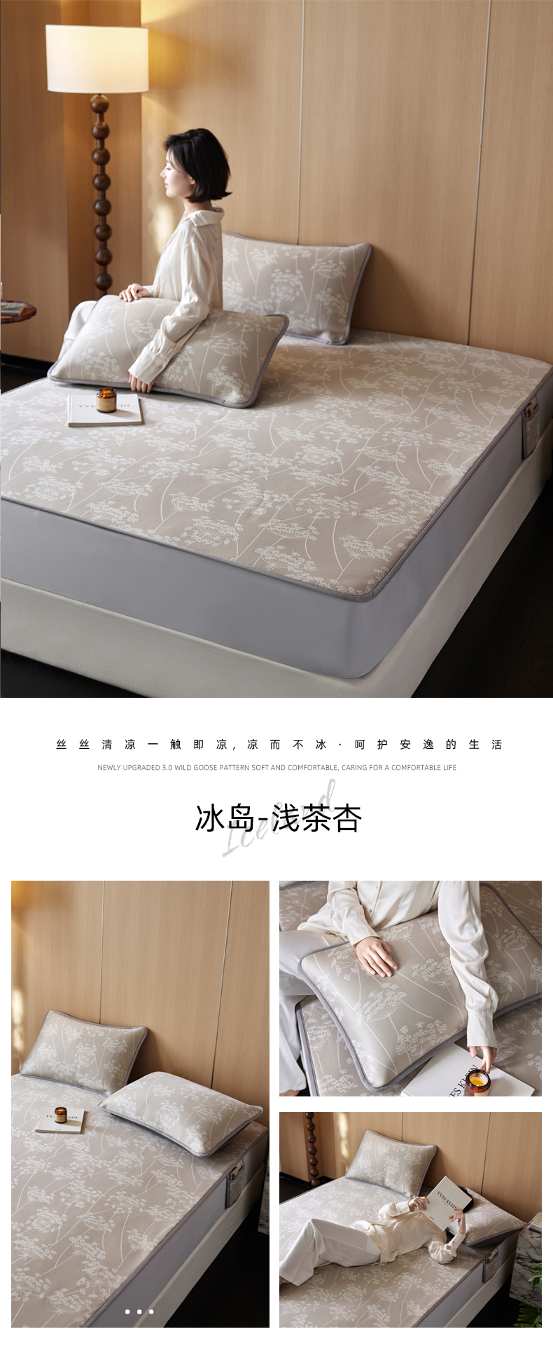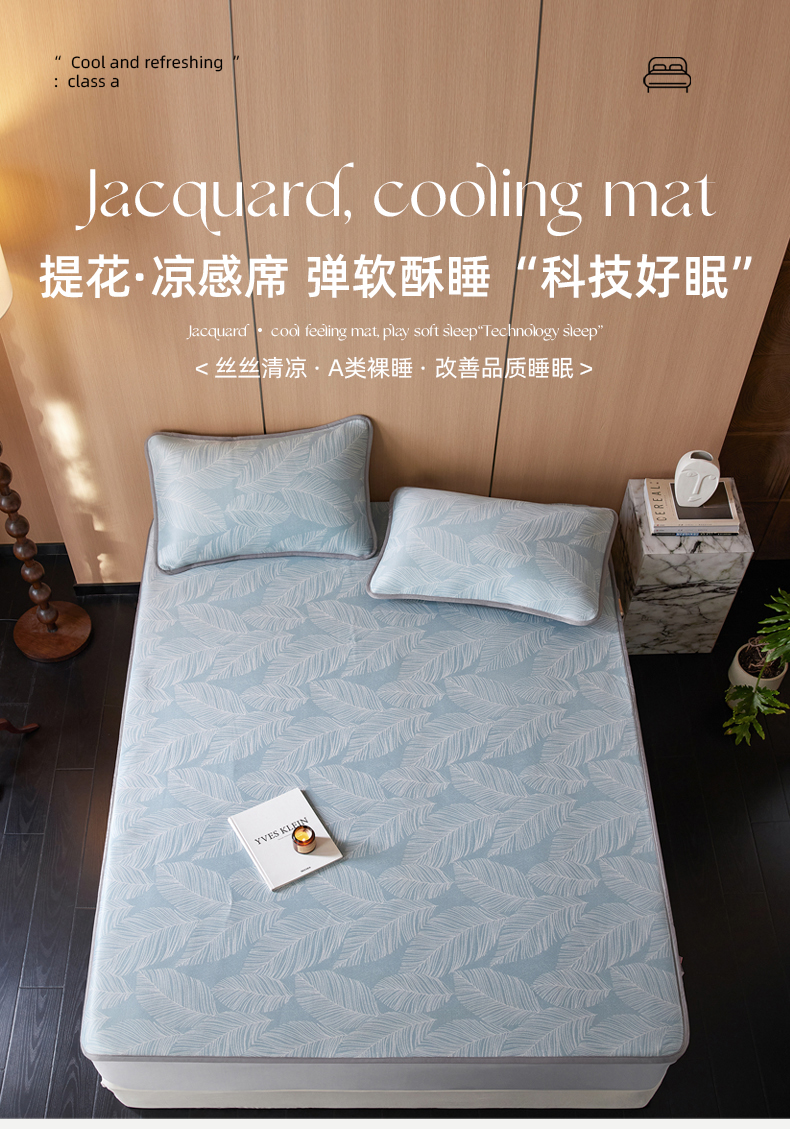 (总)千朵森 2026新款A类抗菌冰岛冰感丝床笠款凉席三件套 风格二